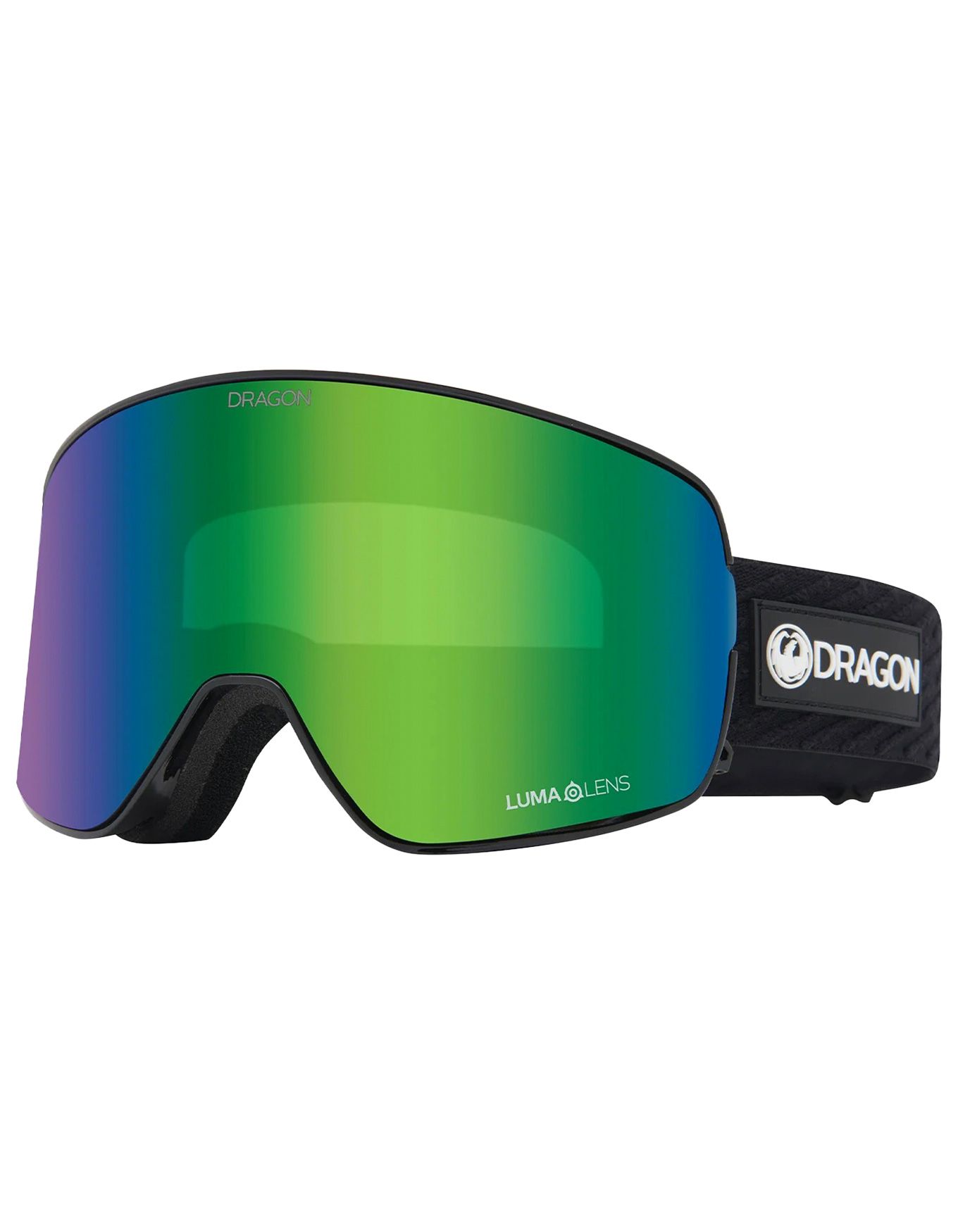 Masque de ski Dragon NFX2 Icon Green avec double écran Lumalens Green Ionized et Amber, cadre cylindrique, mousse triple densité hypoallergénique, ventilation intégrée et traitement antibuée pour un confort durable.