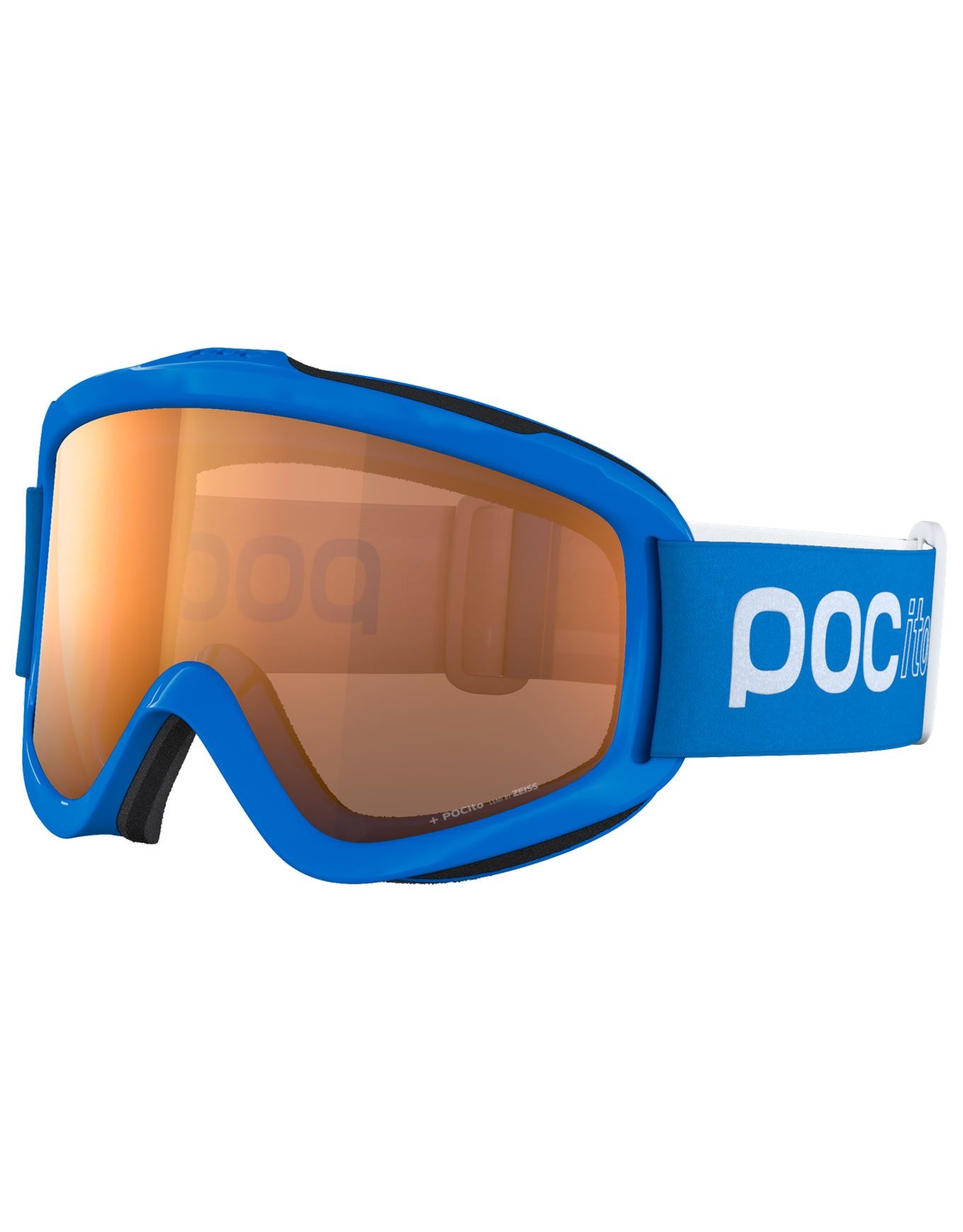 Le Pocito Iris Fluorescent Blue/Partly Sunny Light Orange de POC est un masque de ski spécialement conçu pour les enfants, avec monture souple en polyuréthane, double lentille anti-buée et anti-rayures, et patchs réfléchissants pour une meilleure visibilité sur les pistes.