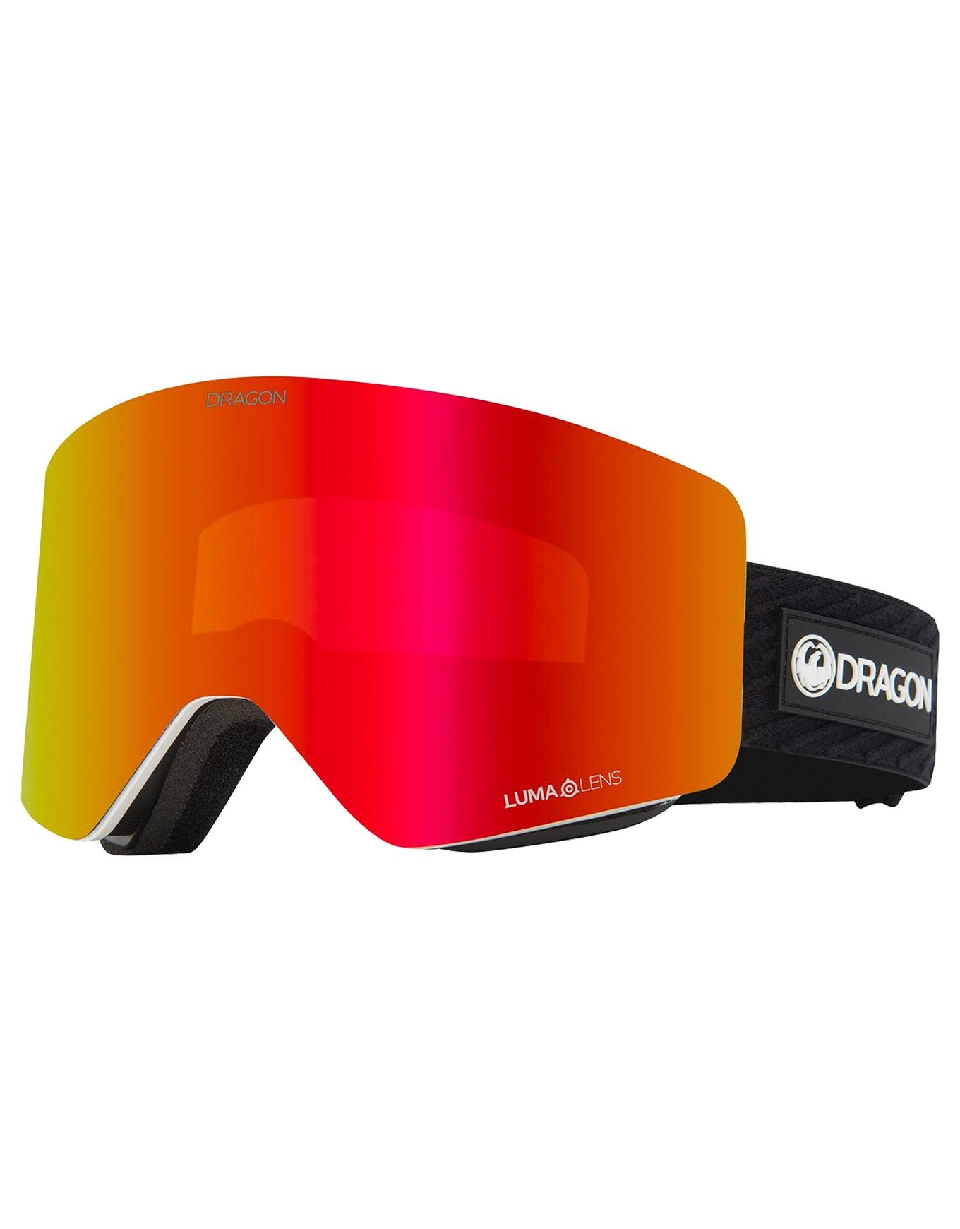 Masque de ski Dragon R1 OTG Icon sans monture avec double écran Lumalens Red Ionized et Lt Rose, traitement anti-buége, mousse triple couche et volume OTG pour lunettes.