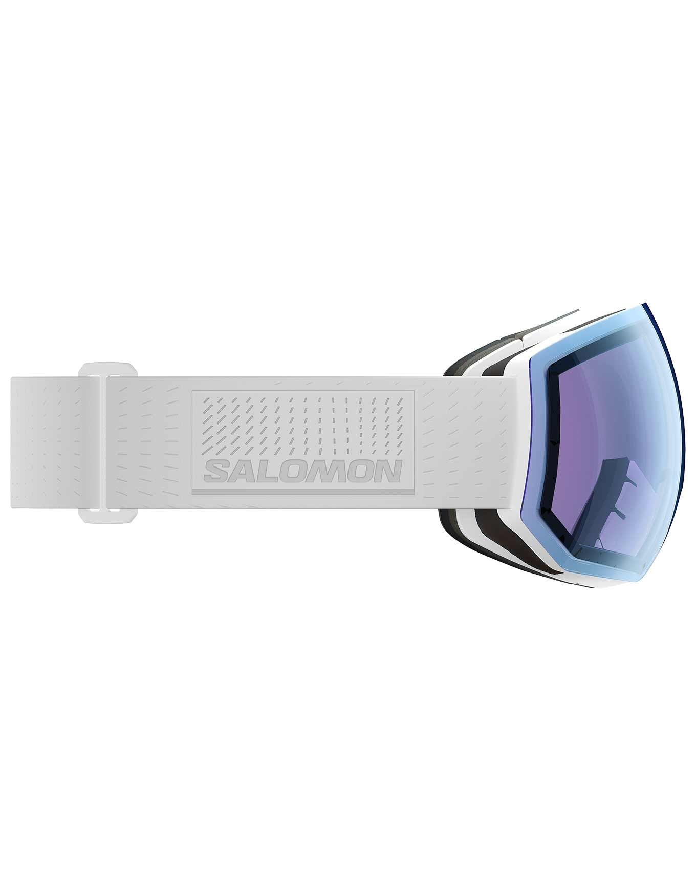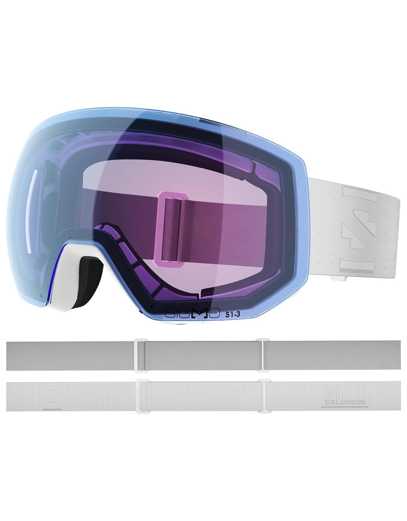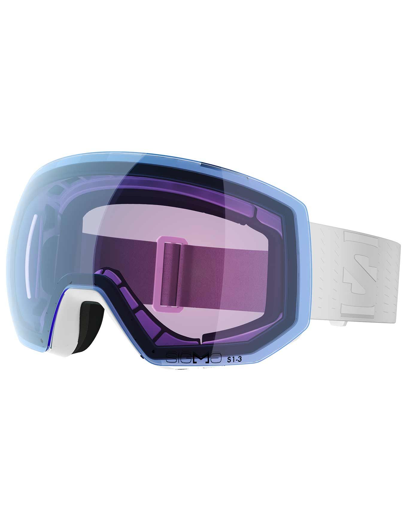 Masque de ski Salomon Radium Pro Sigma Photo White, sphérique pour larges visages, écran photochromique cat. 1-3 et Sigma™ qui accentue les contrastes. Triple mousse et Custom ID Fit assurent un confort stable, tandis qu’AirFlow limite la buée.