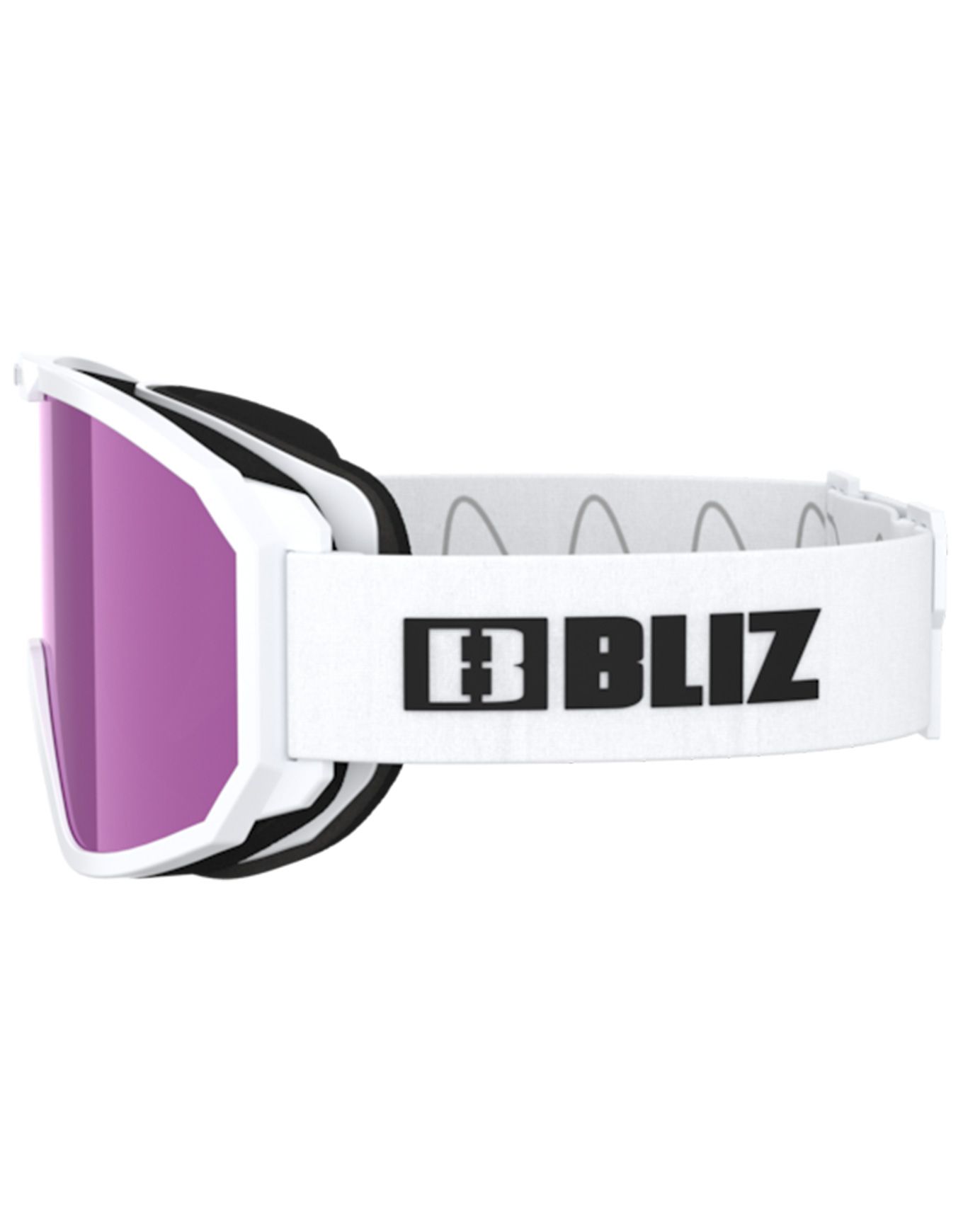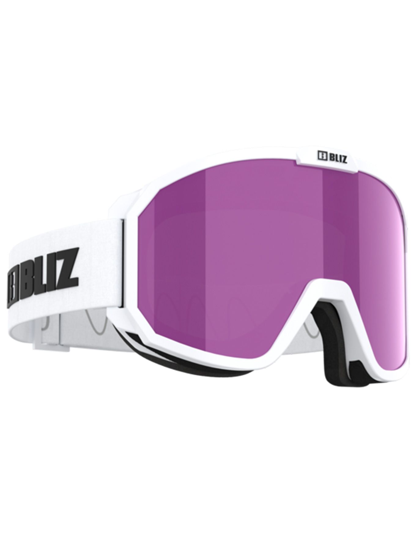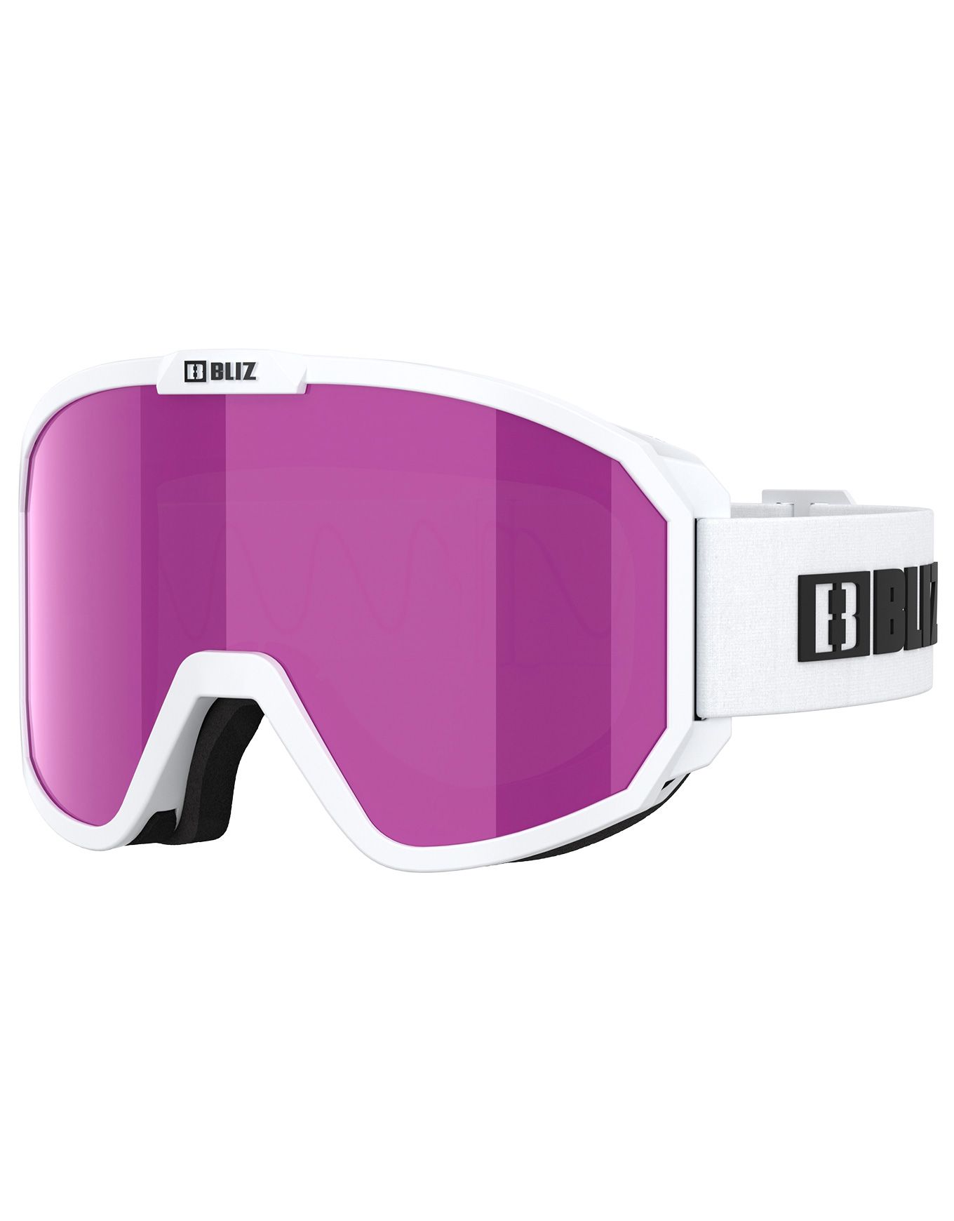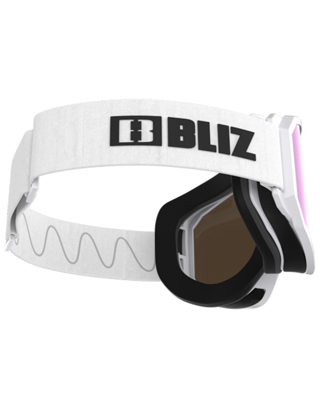 Masque de ski Bliz Rave Matt White W Black Logo – Pink Brown, catégorie 3, double écran cylindrique anti-buée et 100 % UV, Grilamid TR90 ultra-léger, mousse triple densité, compatible lunettes de vue, norme CE.