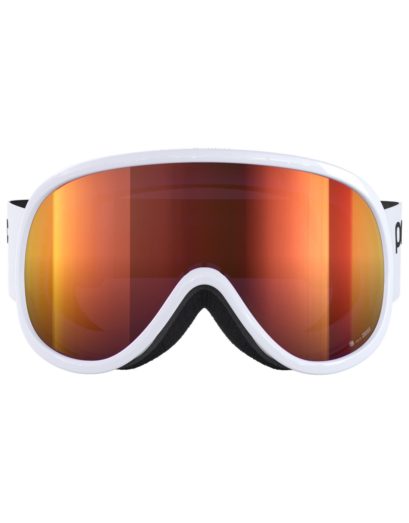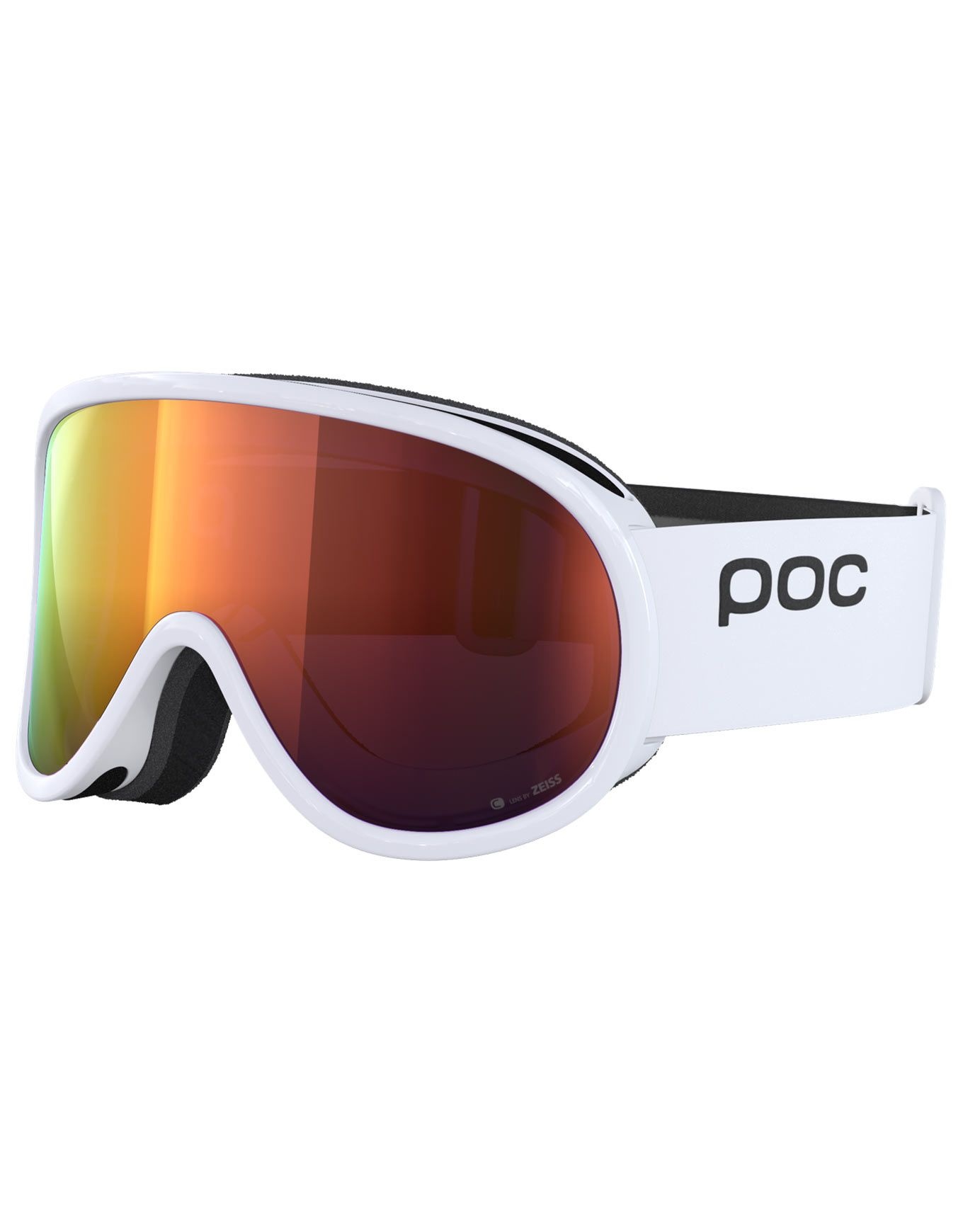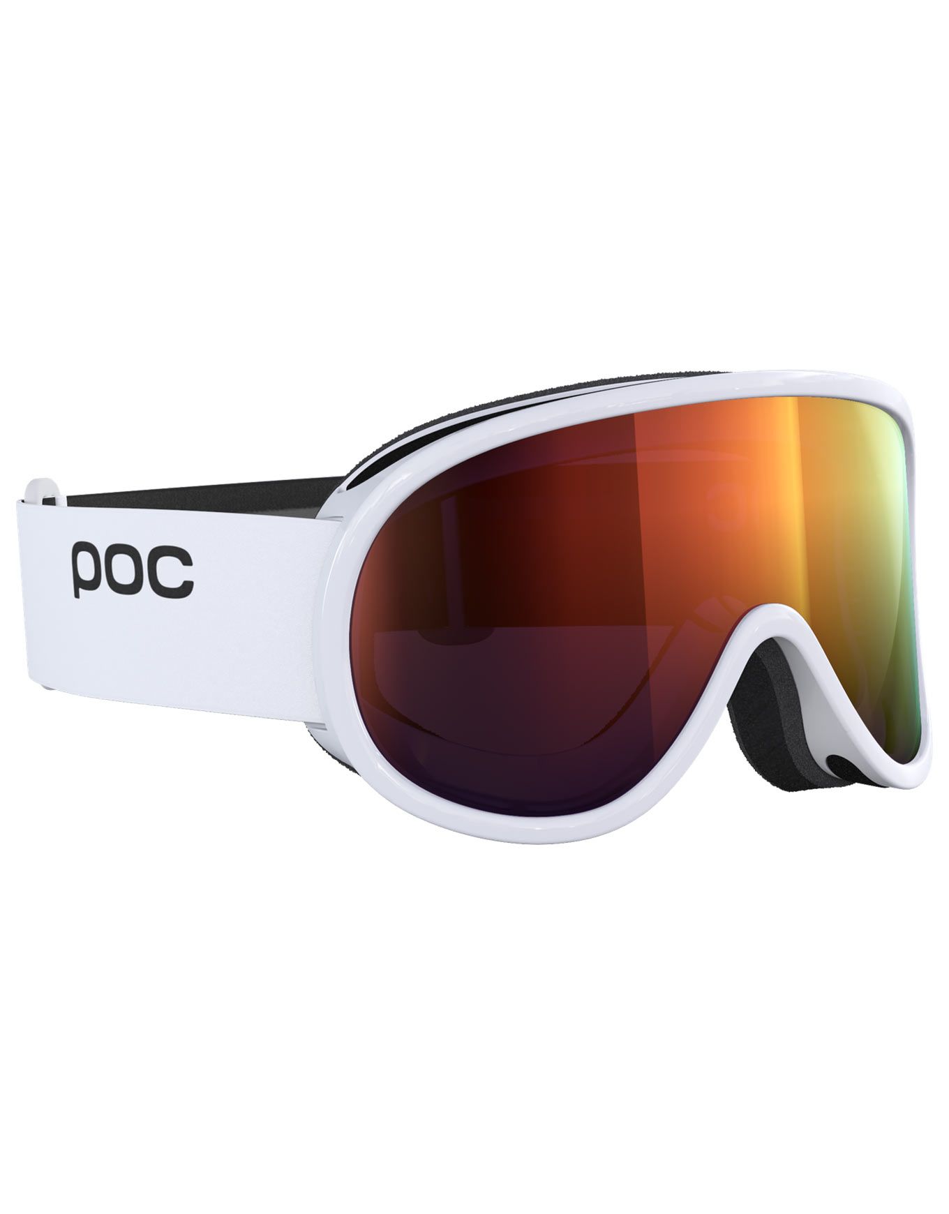 Masque de ski POC Retina Mid Hydrogen White/Partly Sunny Orange, idéal pour enfants ou visages fins. Écran miroir Clarity, champ de vision cylindrique étendu, ventilation anti-buée, mousse triple couche et élastique réglable.