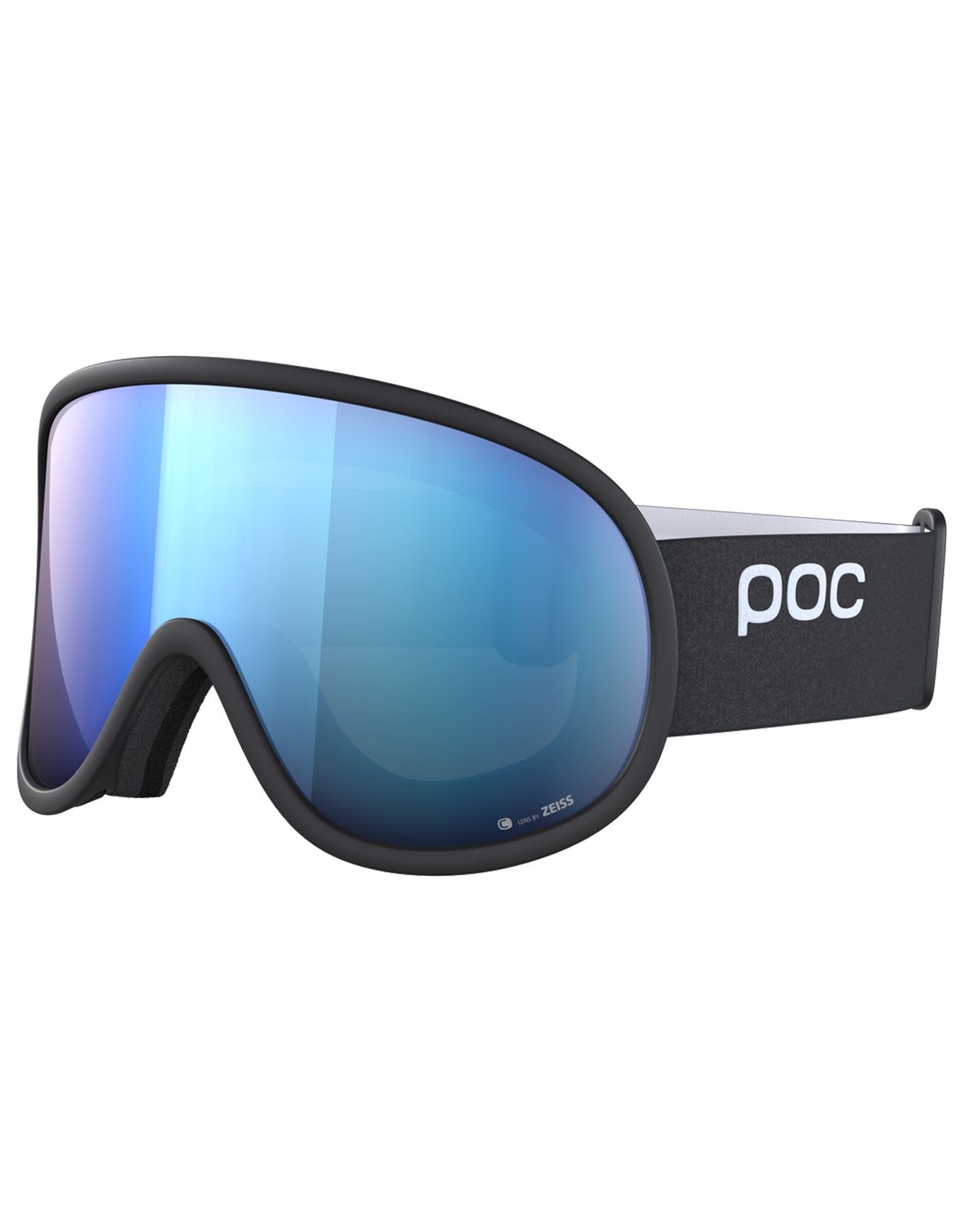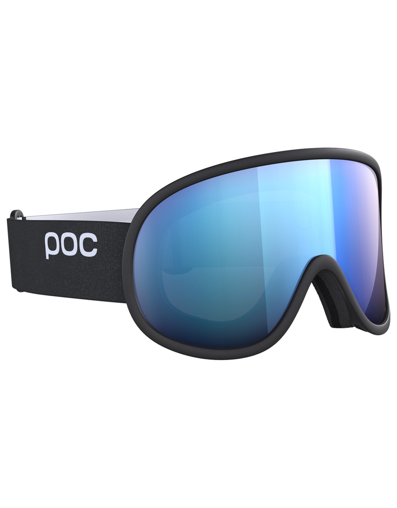 Masque de ski POC Retina Uranium Black/Partly Sunny Blue à monture souple, écran Clarity contrasté, ventilation anti-buée, mousse triple couche et champ de vision cylindrique étendu.