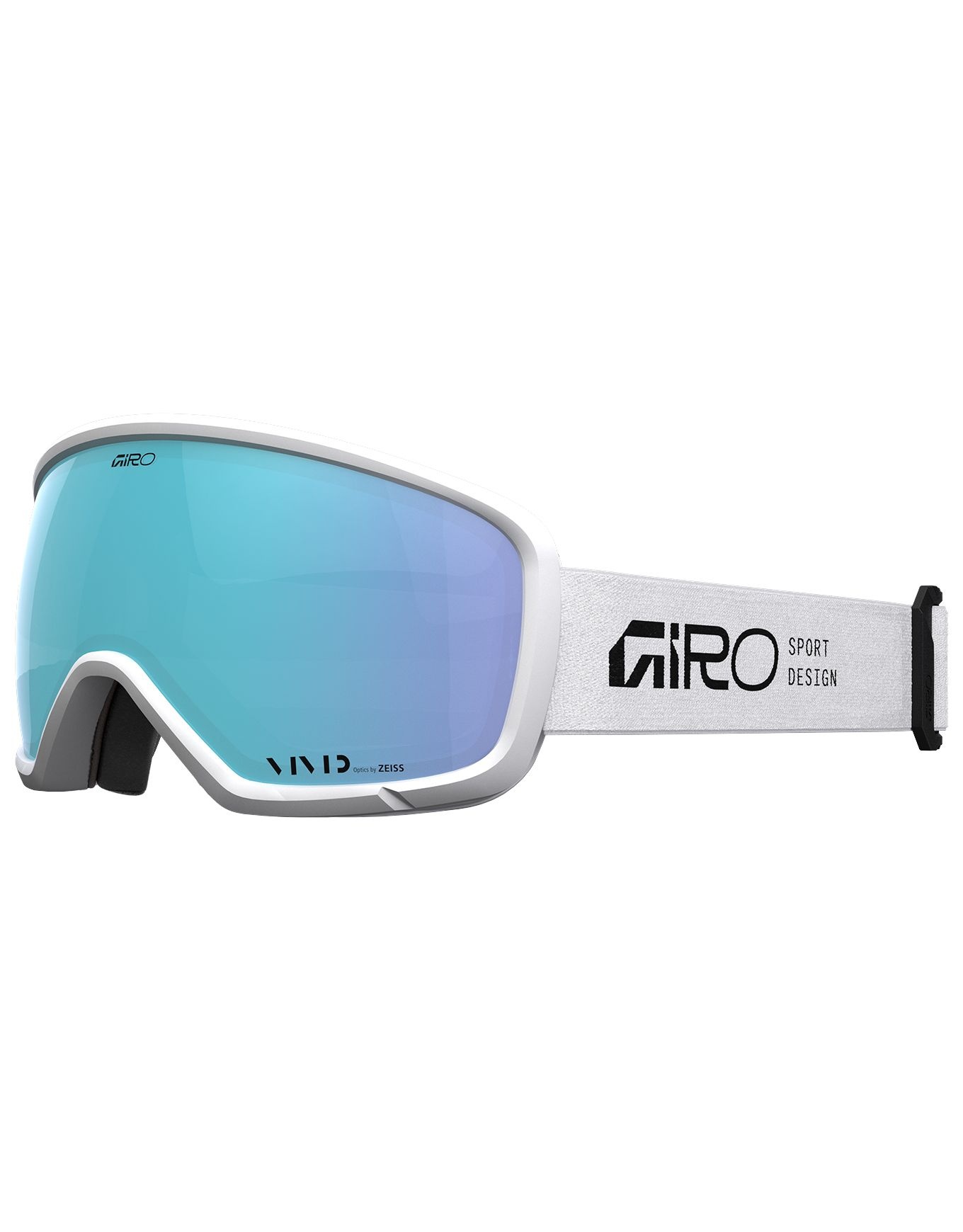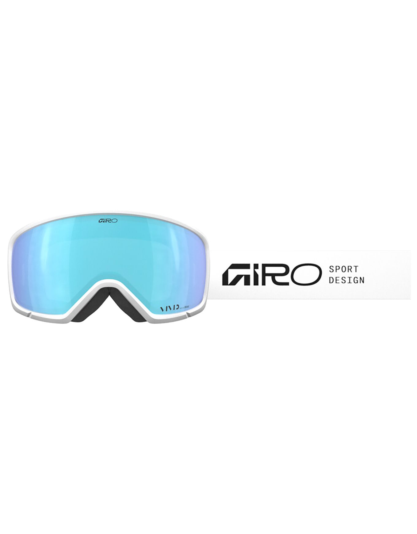 Masque de ski homme Giro Ringo White Stacked Vivid Royal avec technologie Expansion View (EXV) pour un champ de vision périphérique élargi, mousse triple couche, revêtement antibuée et écran torique Vivid ZEISS® catégorie 2. Compatible avec tous les casques Giro.