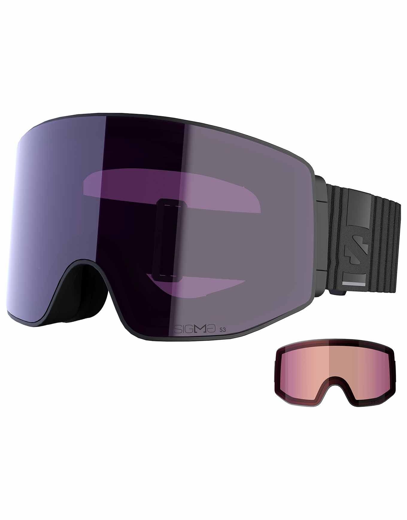 Sentry Prime Sigma Black, masque de ski pour visages larges, offre un champ de vision cylindrique, écrans cat.3/cat.1 interchangeables magnétiquement, ventilation AirFlow et triple mousse pour un confort sans buée sur les pistes.