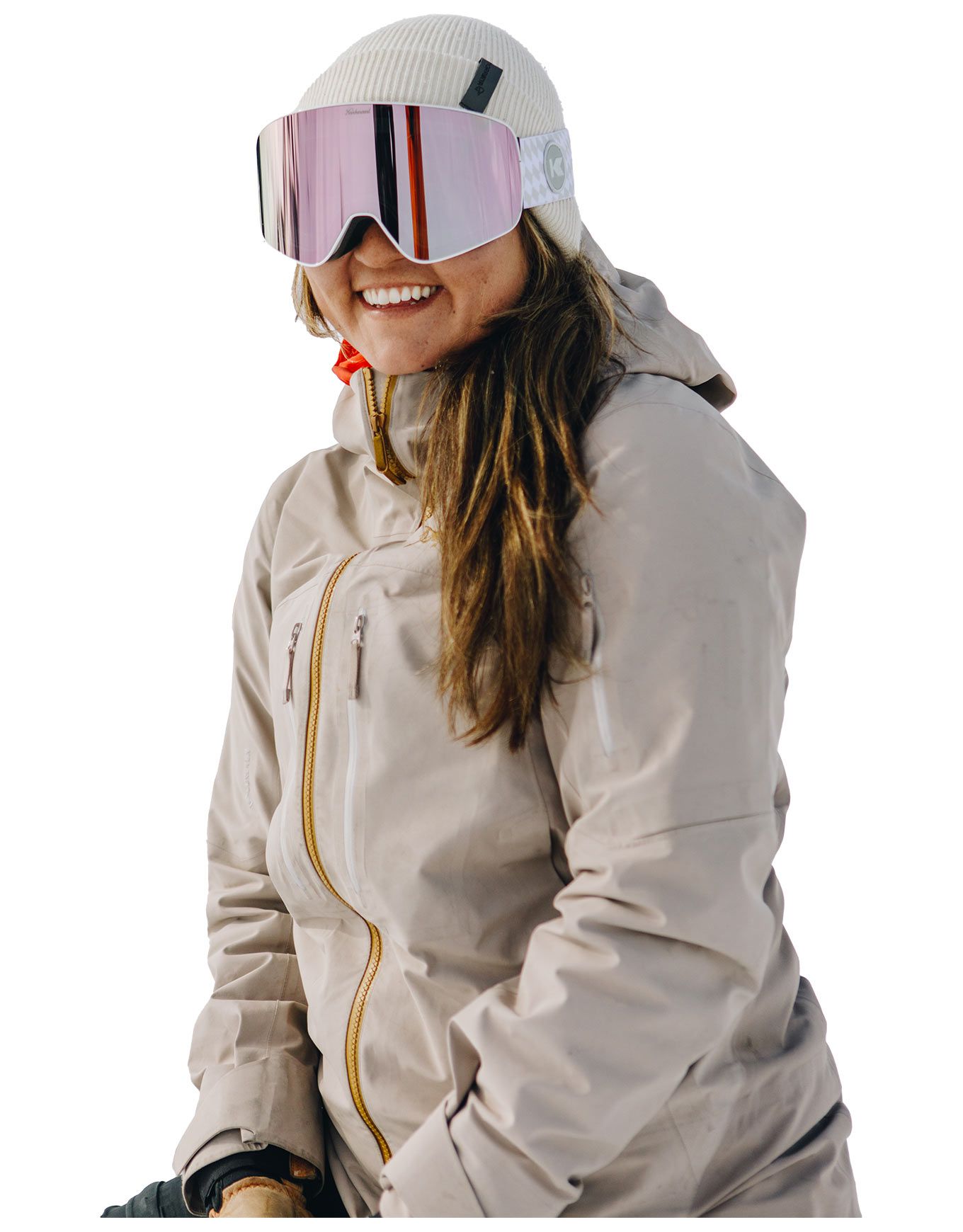 Recouvert d’une couche de silicone antidérapant, le strap très large garantit un maintien stable aussi bien sur le casque que sur le bonnet. Les contours du visage sont épousés par une mousse triple densité, qui assure par ailleurs l’amortissement des chocs.