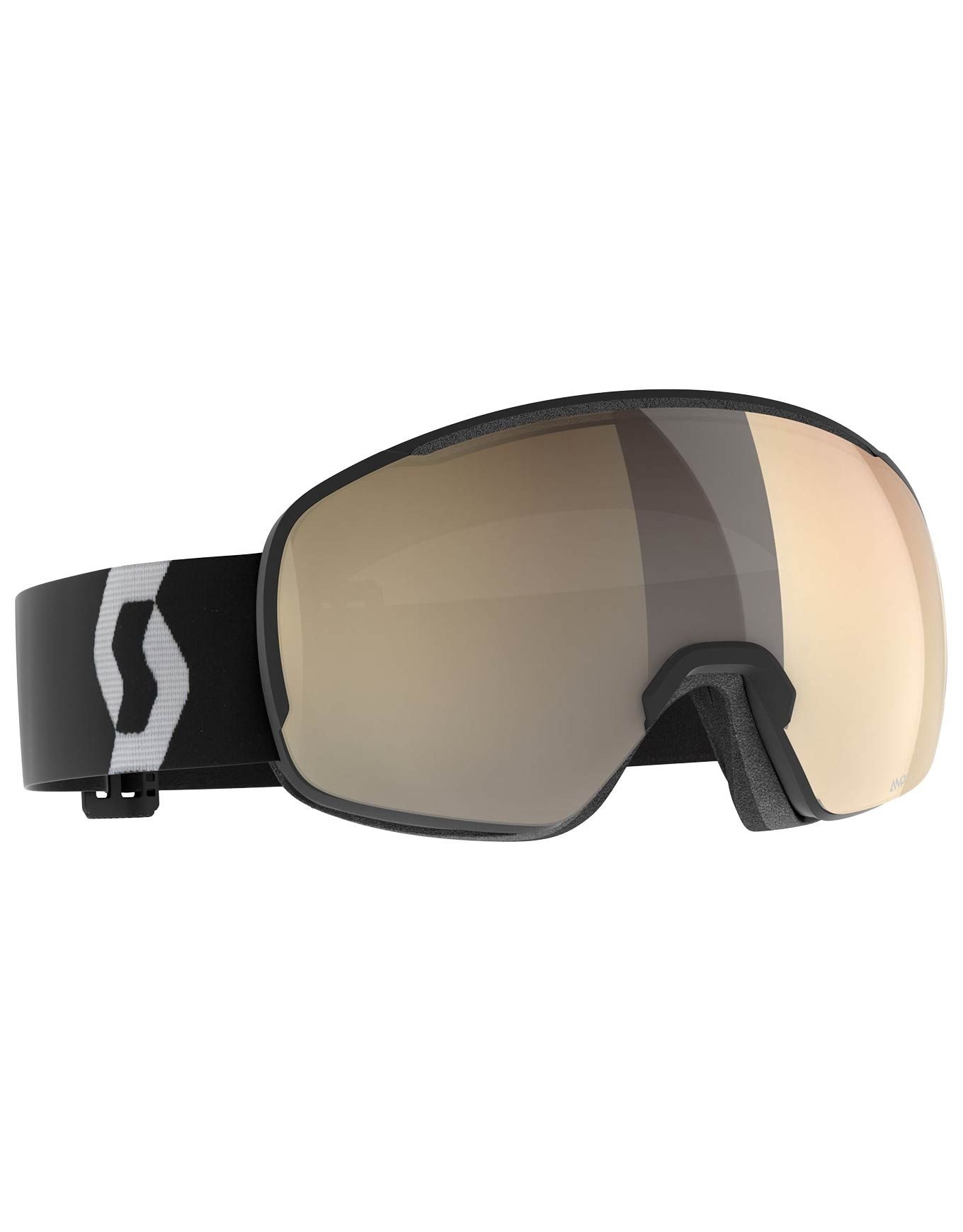 Masque de ski Scott Sphere OTG LS Mineral Black/White AMP LS Bronze Chrome S1-3, compatible lunettes, écran photochromique 1-3 et traitement anti-buée NoFog™ pour vision claire par tous les temps.