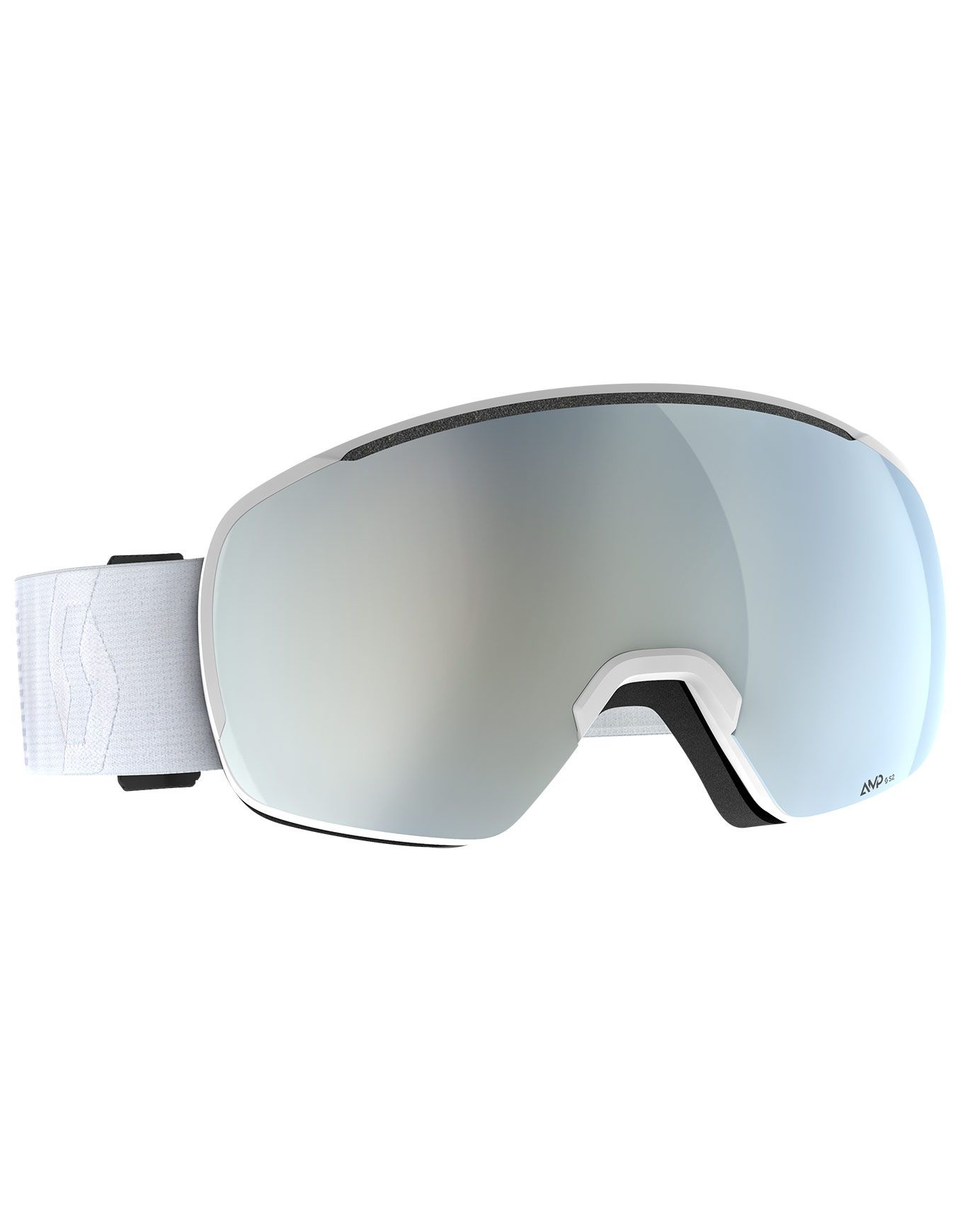 Masque de ski Scott Sphere OTG Mineral White AMP White Chrome S2, compatible lunettes, écran cat. 3 Amplifier, traitement anti-buée NoFog™, ventilation RAM, mousse triple couche, visage moyen à large.