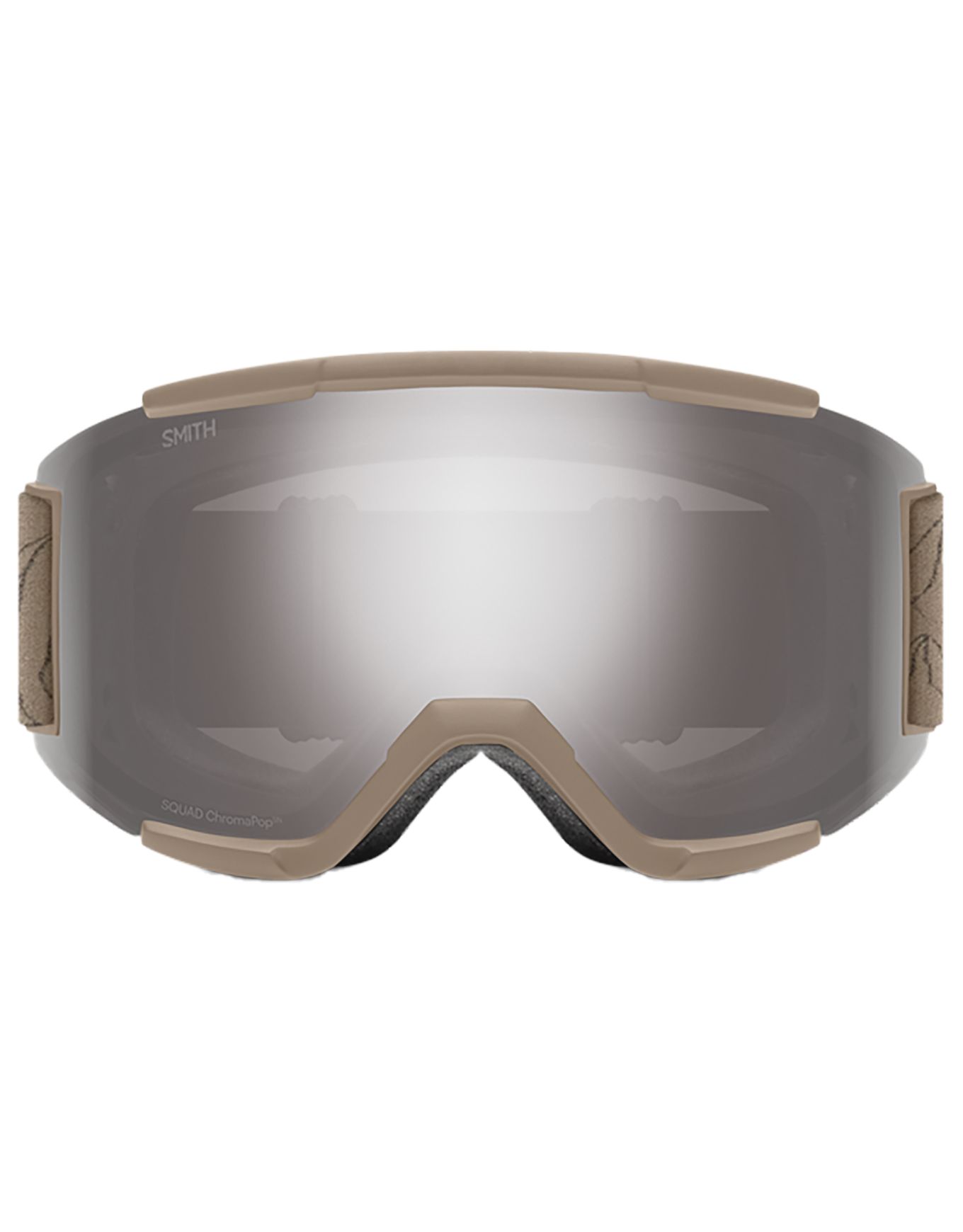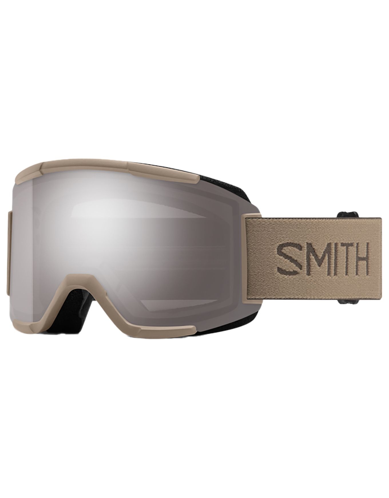 Masque de ski Smith Squad Bandit Chromapop Sun Platinum Mirror, écran cylindrique catégorie 3 avec technologie ChromaPop™ pour un contraste renforcé et une vision panoramique. Livré avec un second écran catégorie 0, monture Responsive Fit™, mousse DriWix et sangle silicone réglable pour un confort et une étanchéité optimaux, compatible casques Smith.