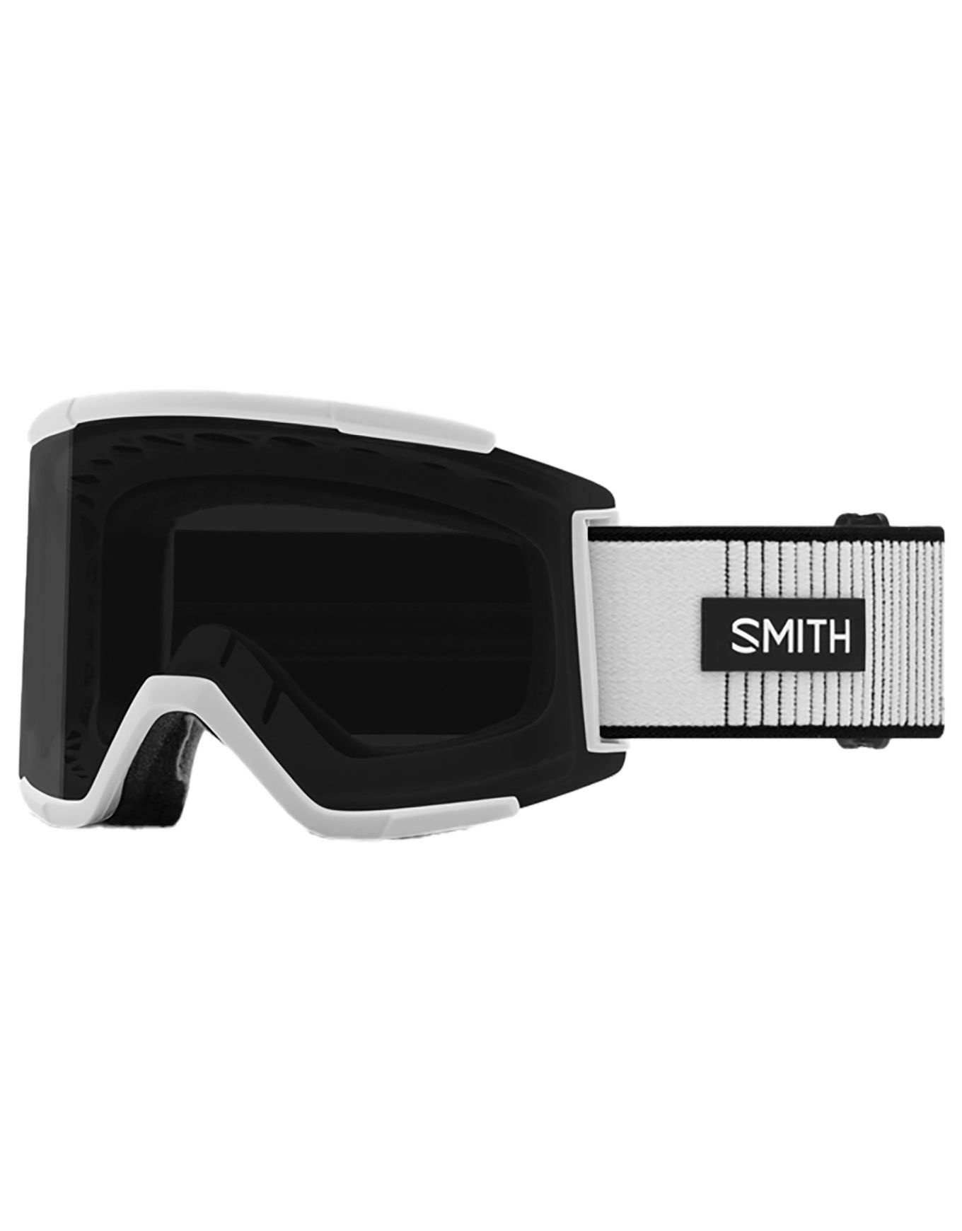 Masque de ski Smith Squad XL White Fade Out Chromapop Sun Black, écran cylindrique extra-large et monture Responsive Fit™ pour un champ de vision panoramique et un confort optimal. Technologie ChromaPop™, double écran interchangeables cat. 3 et 1, mousse DriWix et compatibilité casques Smith.