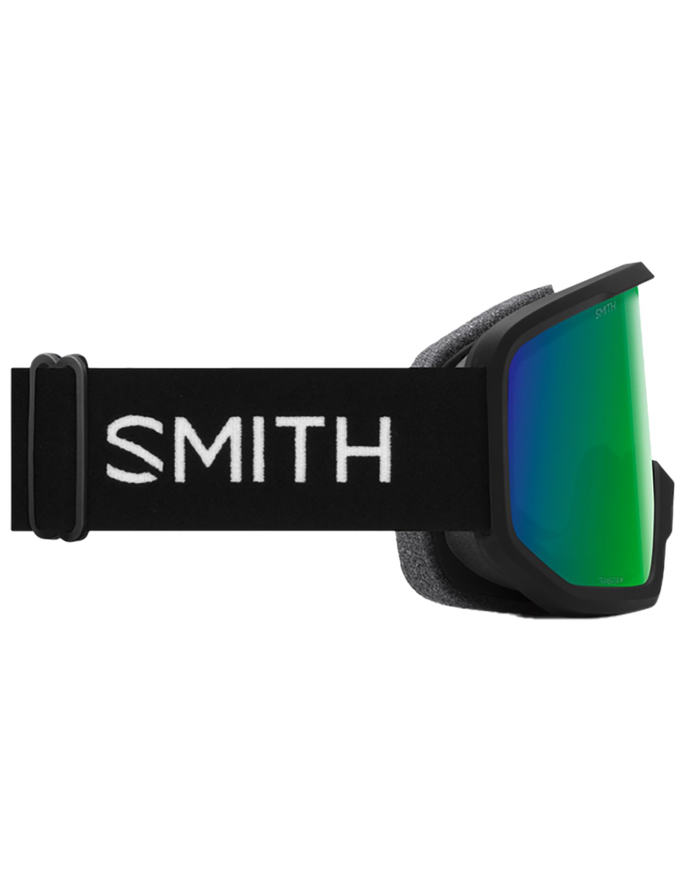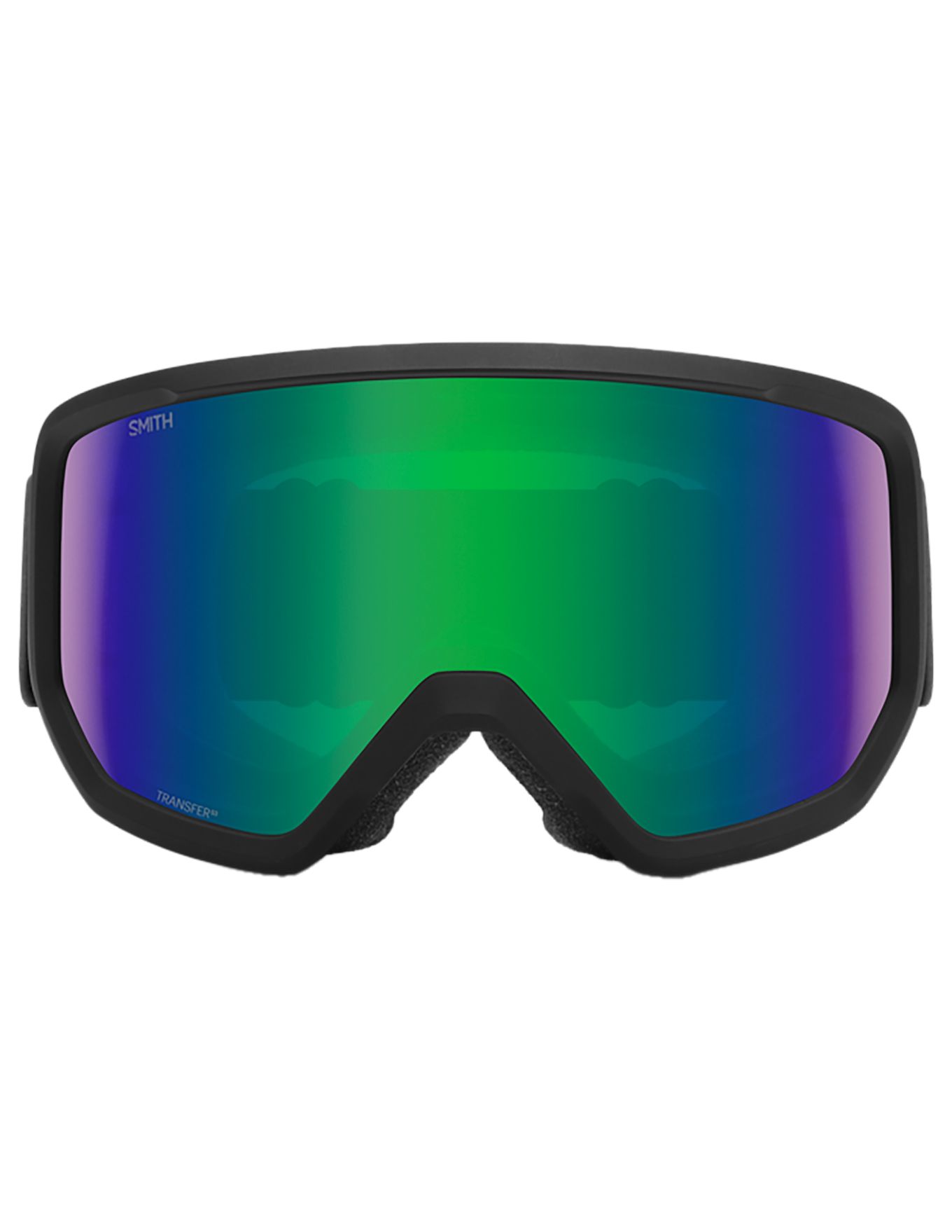 Masque de ski/snow Smith Transfer Black Green Sol-X Mirror doté d’un écran sphérique Carbonic-X catégorie 3, traitement Fog-X anti-buée, mousse double densité et ajustement rapide compatible casques Smith.