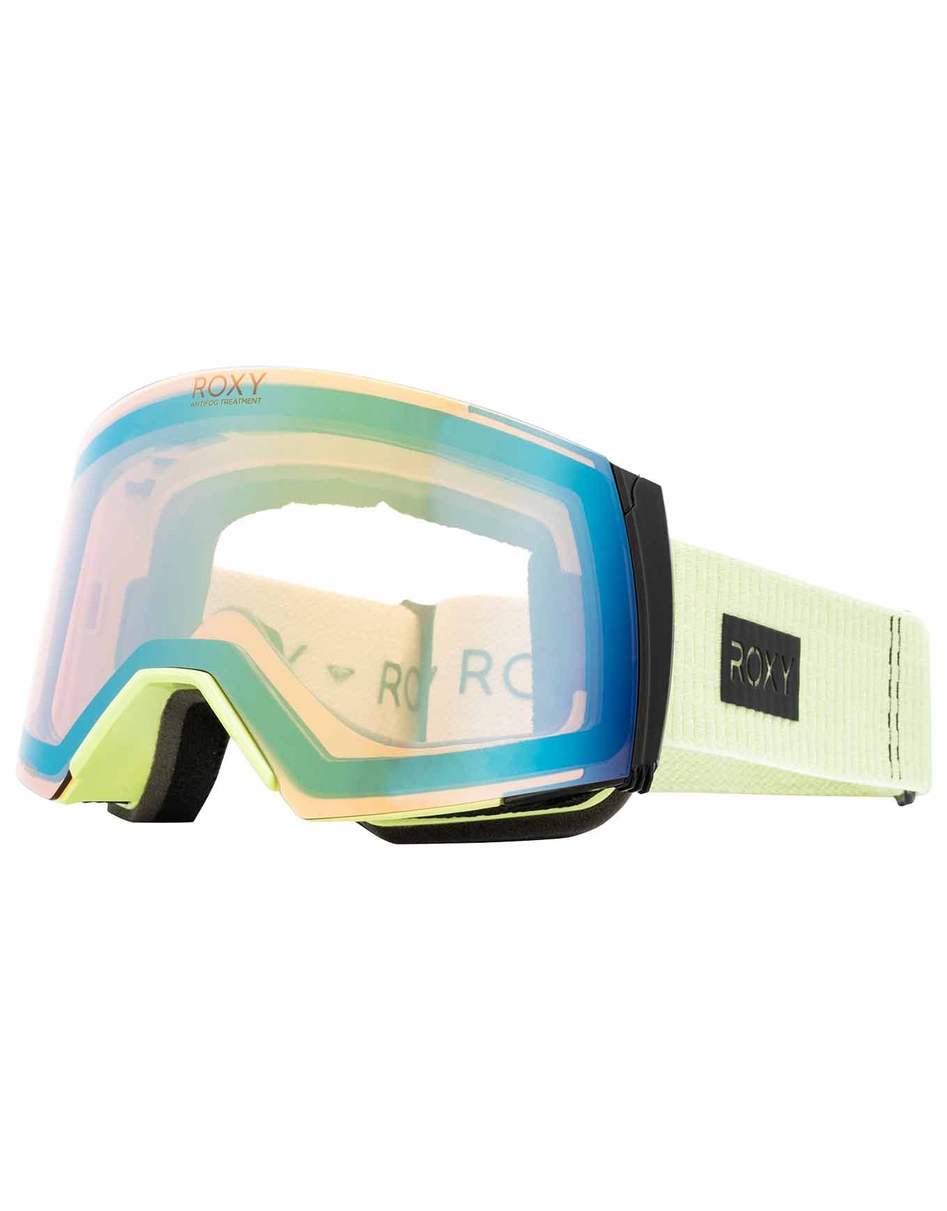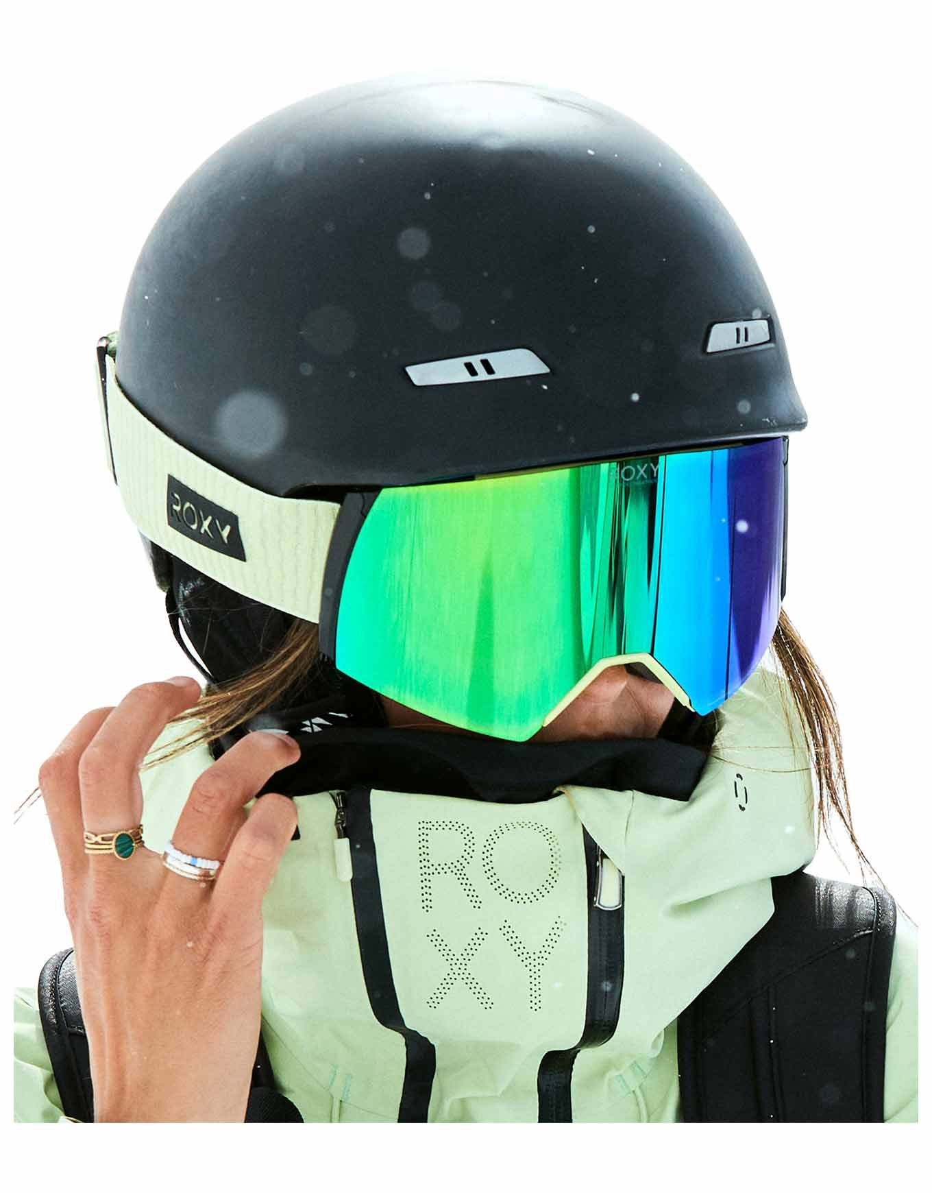 Masque de ski Roxy Wildlove Sngg Butterfly Clux Green pour femme, double écran cylindrique PU/acétate sans distorsion, traitement antibuée 120 s, 100 % UV, lentille magnétique spare pour mauvais temps, mousse bi-densité et microfibre douce.