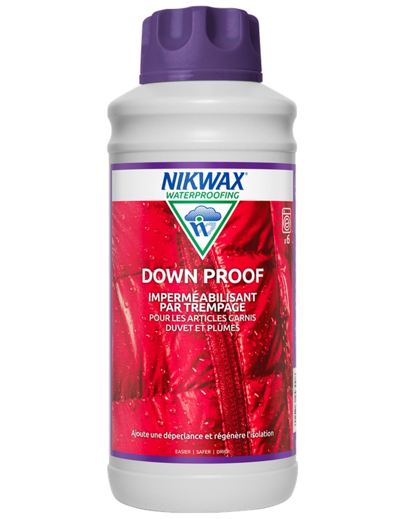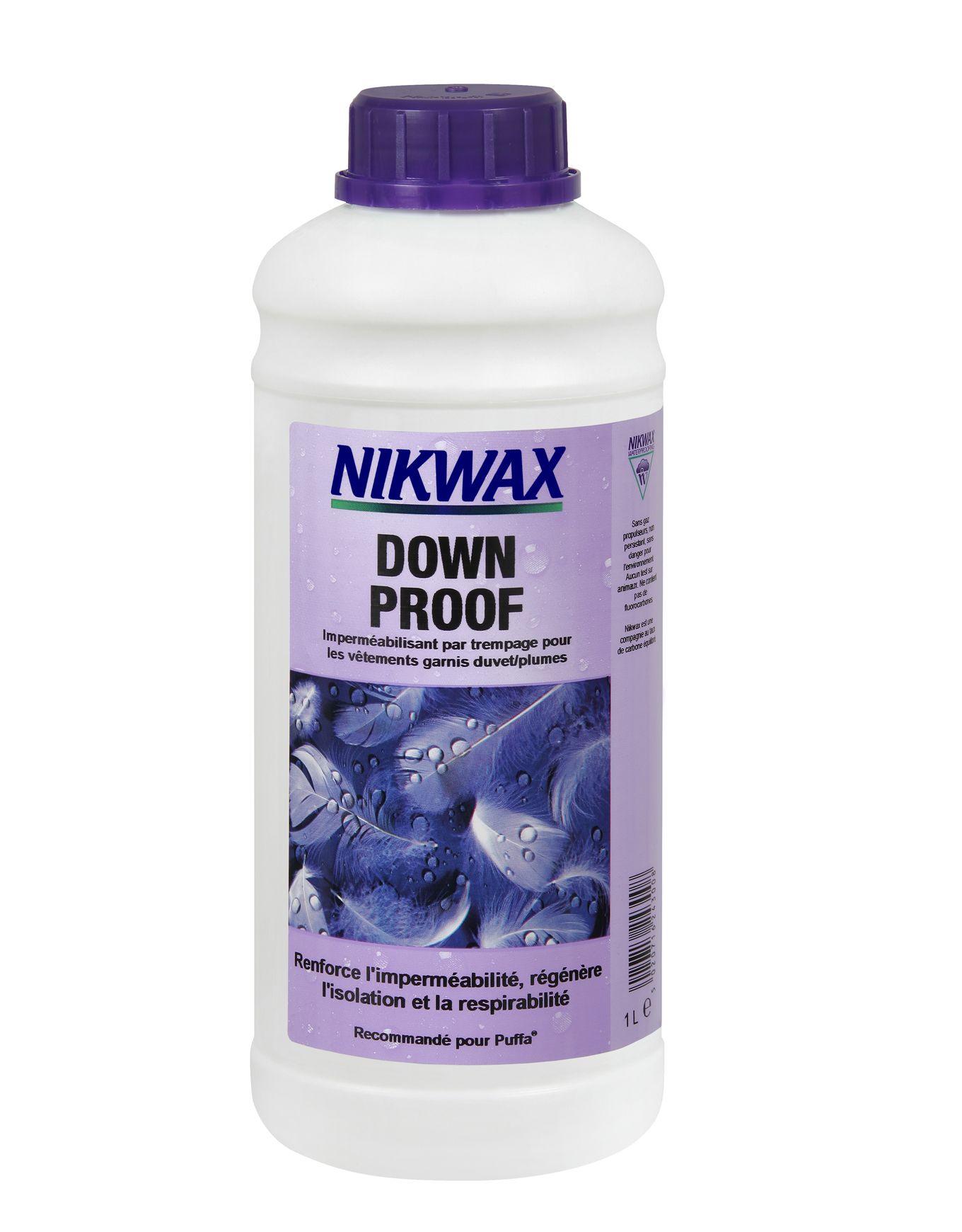 Nikwax Down Proof 1L imperméabilise et régénère l’isolation des vêtements et équipements en duvet, conserve la respirabilité et minimise la prise de poids par temps humide.
