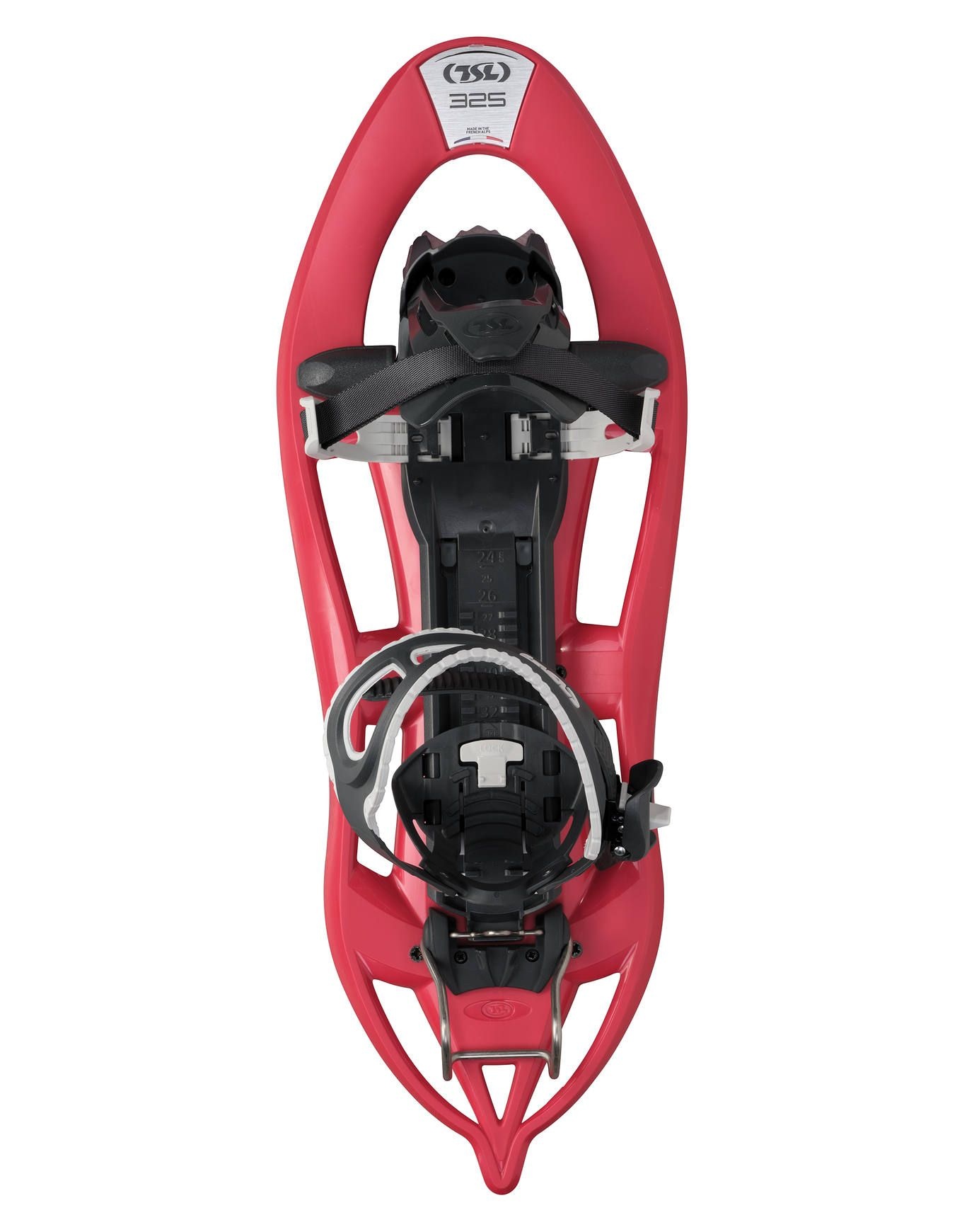 Les raquettes à neige TSL Outdoor 325 Elevation Paprika s’adaptent aux gabarits 50-120 kg et offrent un serrage mémorisé, 6 crampons acier interchangeables, amortisseur bruits-chocs et cale de montée pour un confort optimal en balade hivernale.