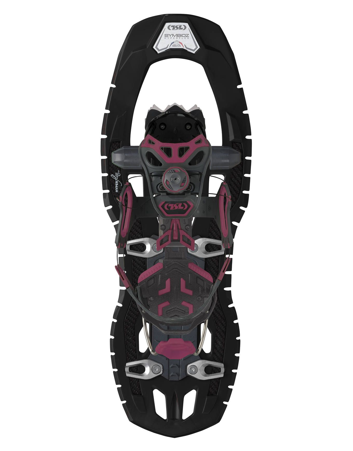 Raquettes à neige TSL Outdoor Symbioz Hyperflex Instinct Titan pour randonneurs experts, offrant accroche optimale par 8 crampons inox interchangeables, griffe avant et châssis Hyperflex s’adaptant aux terrains techniques. Serrage BOA® ultra-rapide, déroulé naturel, réglage mémorisé, strap bi-matière confortable.
