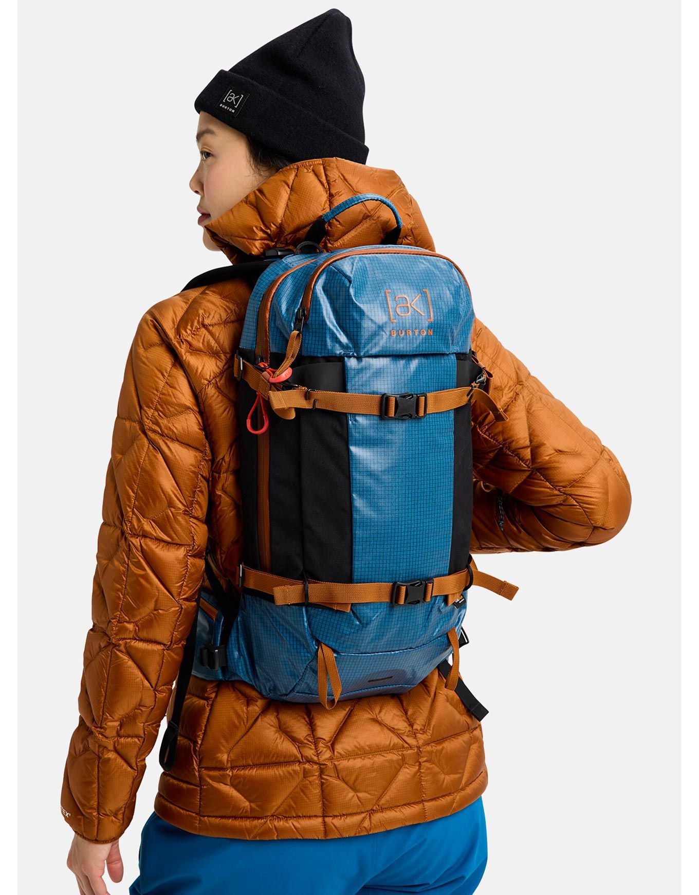 Sac à dos Burton AK Dispatcher 18L Blue Teal, en Cordura® 210D Ripstop enduit, conçu pour les sorties ski et snowboard journalières sur pistes ou en backcountry. Poches étanches à accès rapide pour sécurité et organisation, bretelles ajustables, porte-skis/planche.