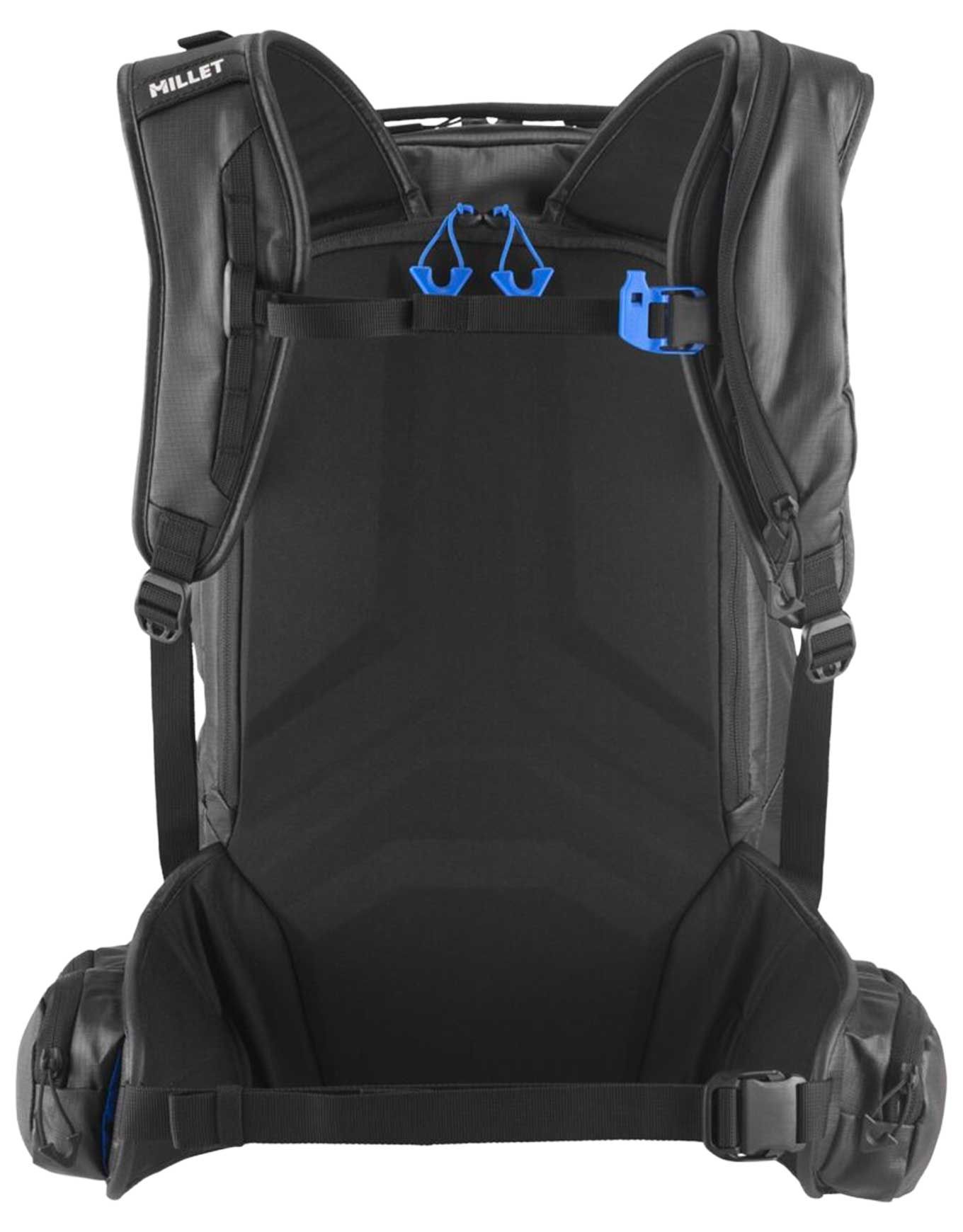 Malgré sa compacité, ce modèle se distingue par son équipement complet : transport de skis, snowboard, bâtons, piolets et casque. À l’intérieur, une poche est réservée au matériel de sécurité anti-avalanche, une autre aux objets de valeur et/ou au masque pour prévenir les rayures, ainsi qu’un compartiment accueillant une poche à eau accompagnée d’un fourreau externe permettant l’hydratation tout au long de la journée.