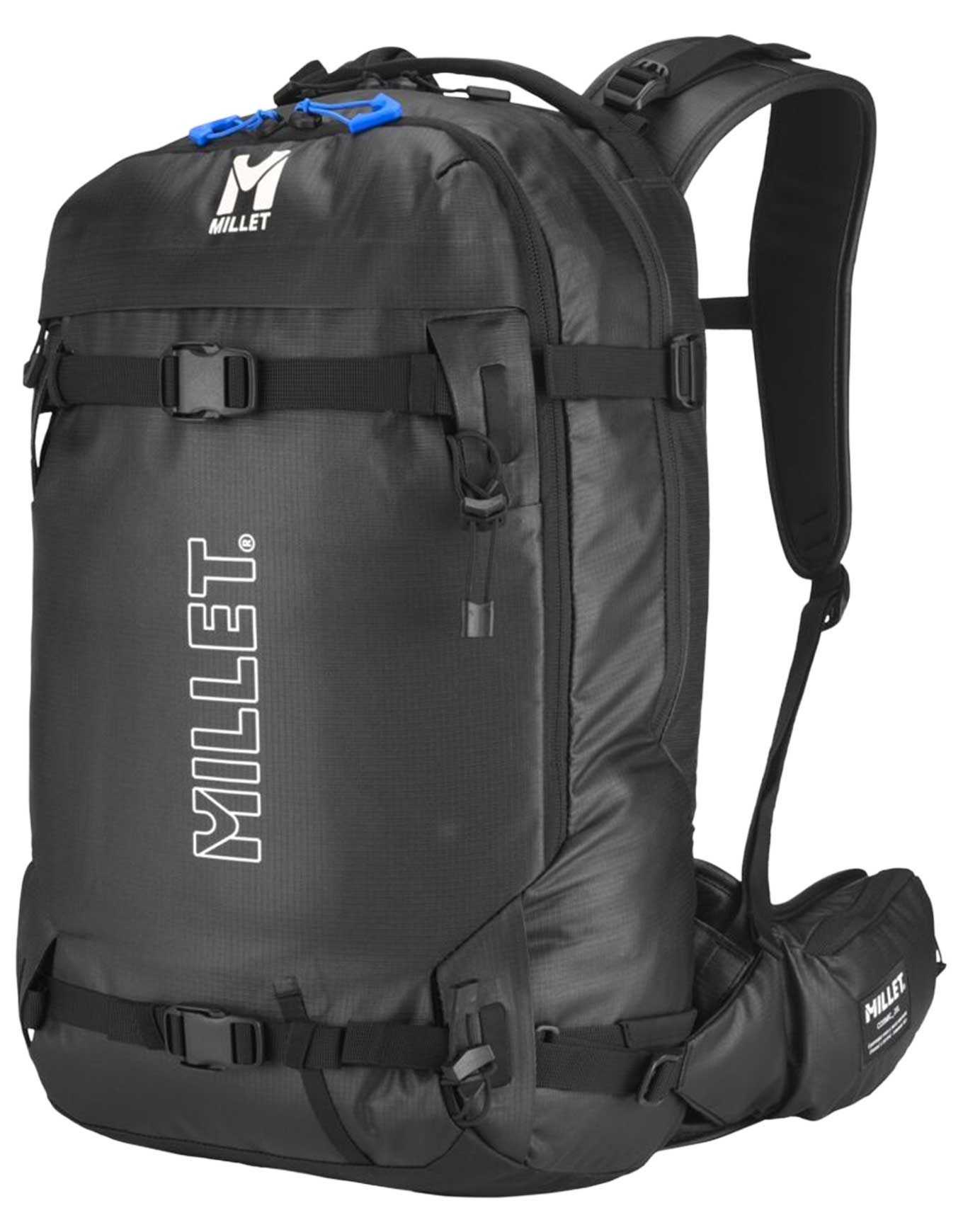 Sac à dos de ski Millet Cosmic 28 Black/Black, 28 L en nylon 100 % recyclé imperméable, spécial freeride avec porte-skis/snow/bâtons/piolets/casque, compartiment sécurité avalanche, poche eau et dorsale ergonomique ajustable.