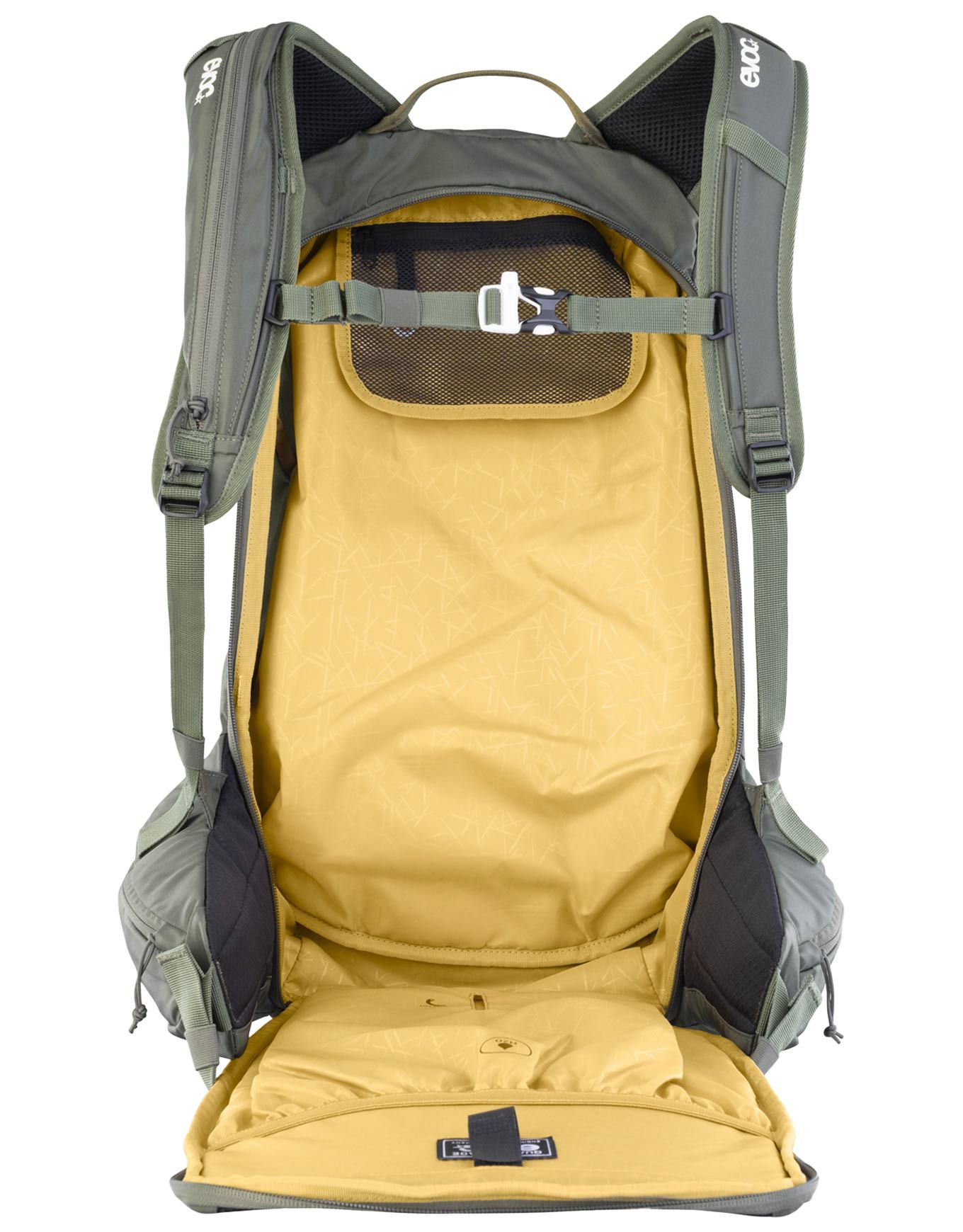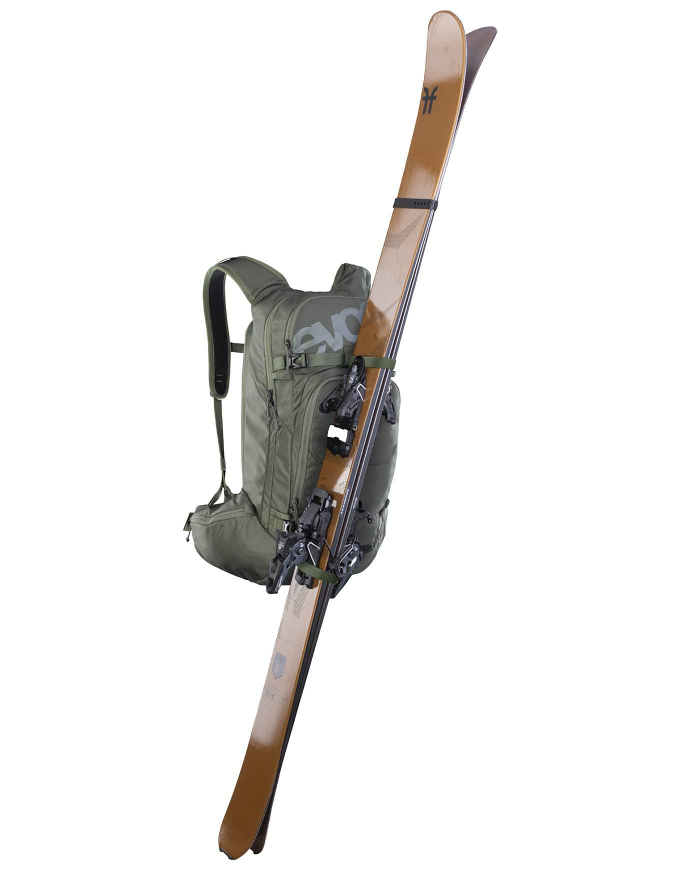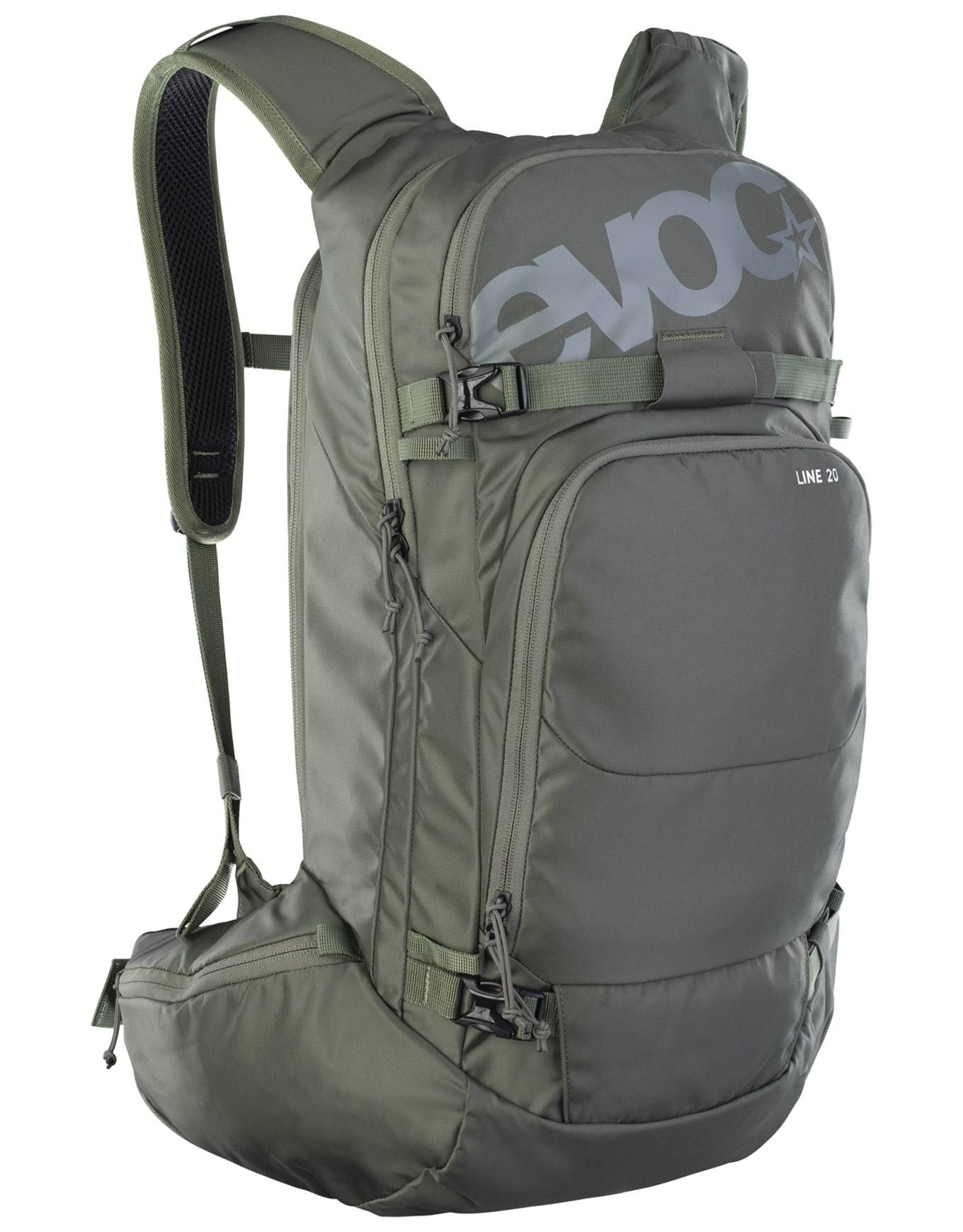 Sac à dos de ski Evoc Line 20 Dark Olive, 20 L, stable grâce au système Neutralite et à la coupe Body Hugging, avec accès double zip haut/dos, poche ceinture, porte-raquettes et ventilation Air Circulation.