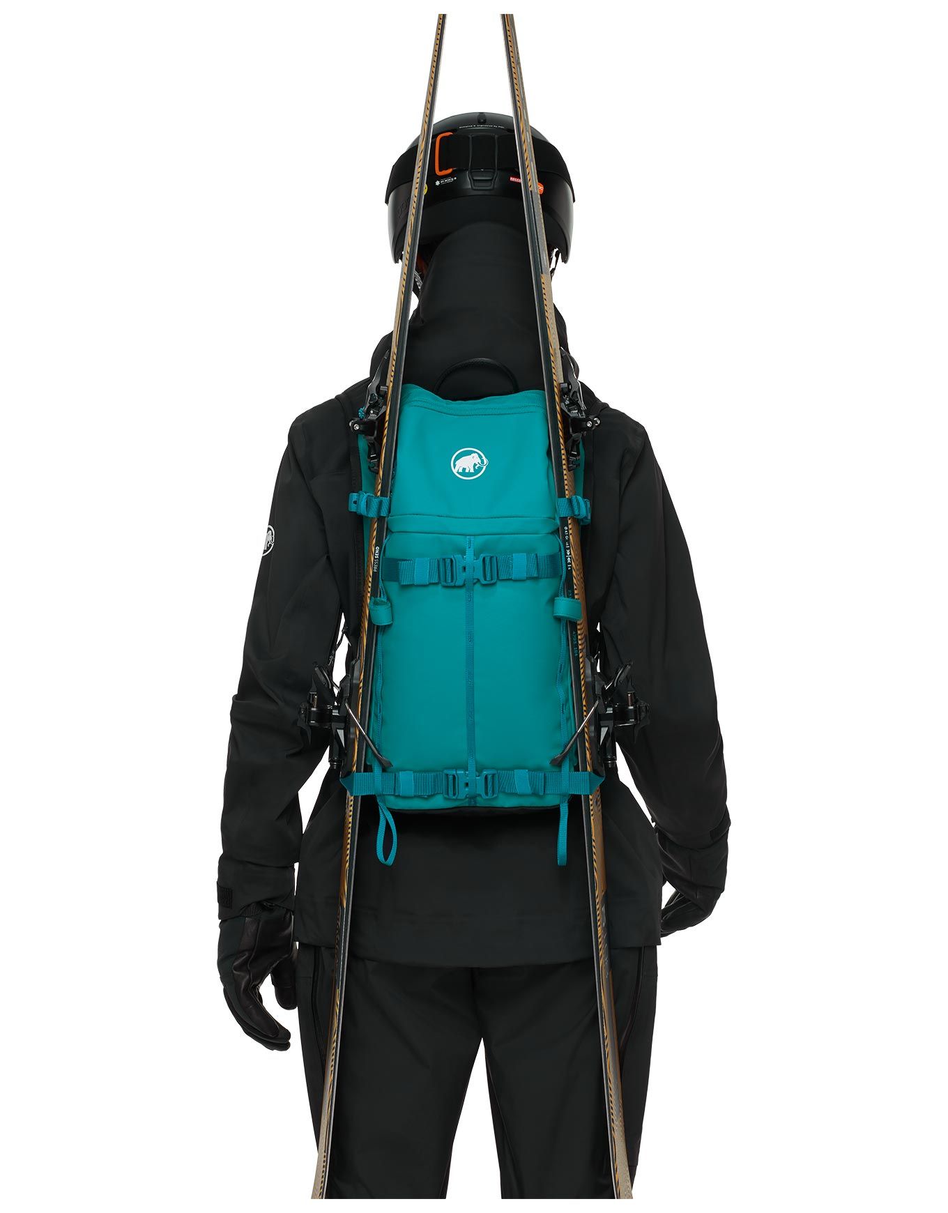 Sac à dos de ski freeride Mammut Nirvana 18 Deep Teal/Black pour femme, compatible protection dorsale et hydratation, avec poche sécurité avalanche, fixations ski/snowboard et porte-casque.