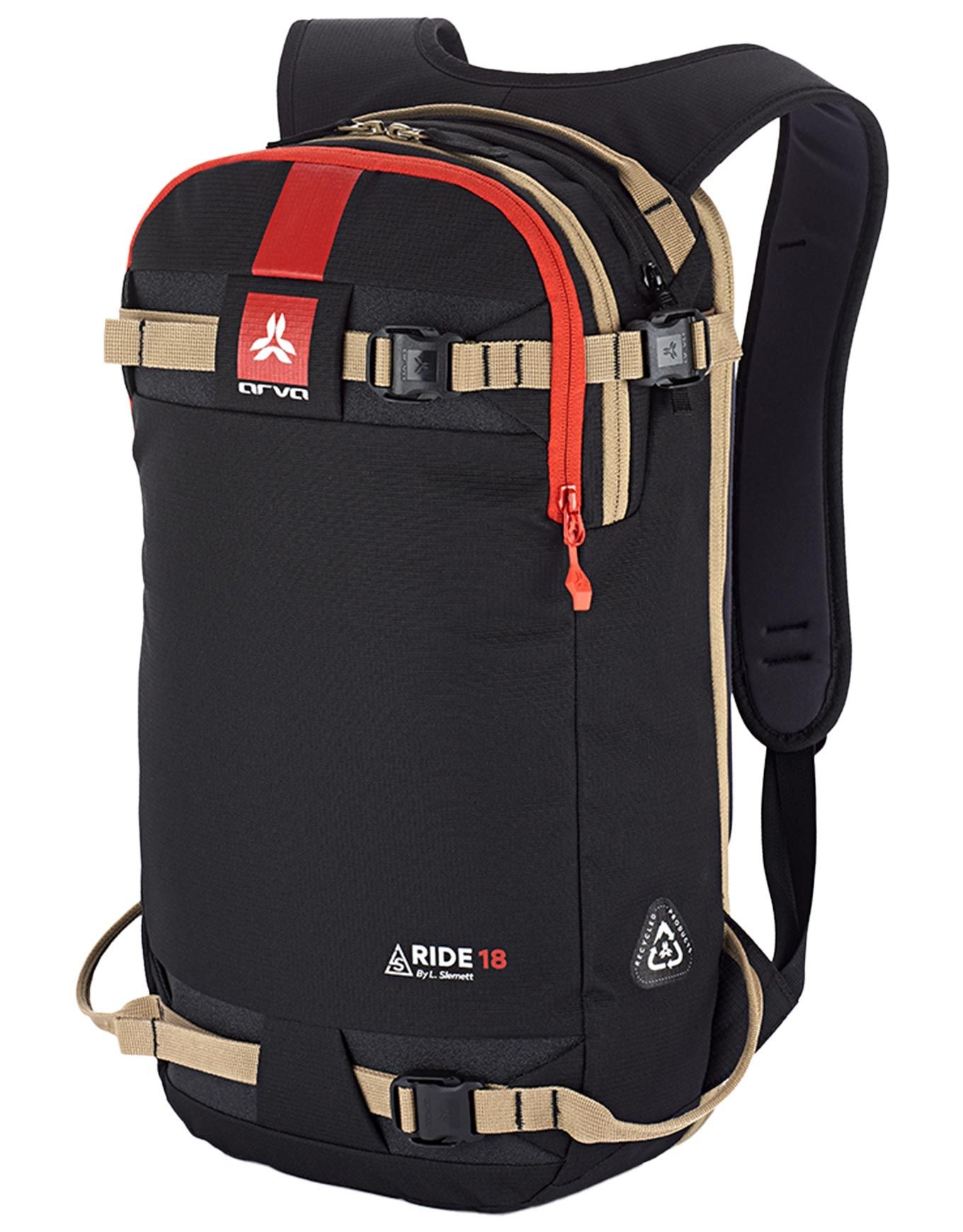 Sac à dos Arva Ride 18 Black, 18 L conçu avec Léo Slemett pour le freeride : bretelles ajustables, ceinture amovible, porte-skis/snowboard, porte-piolets et poche sécurité.