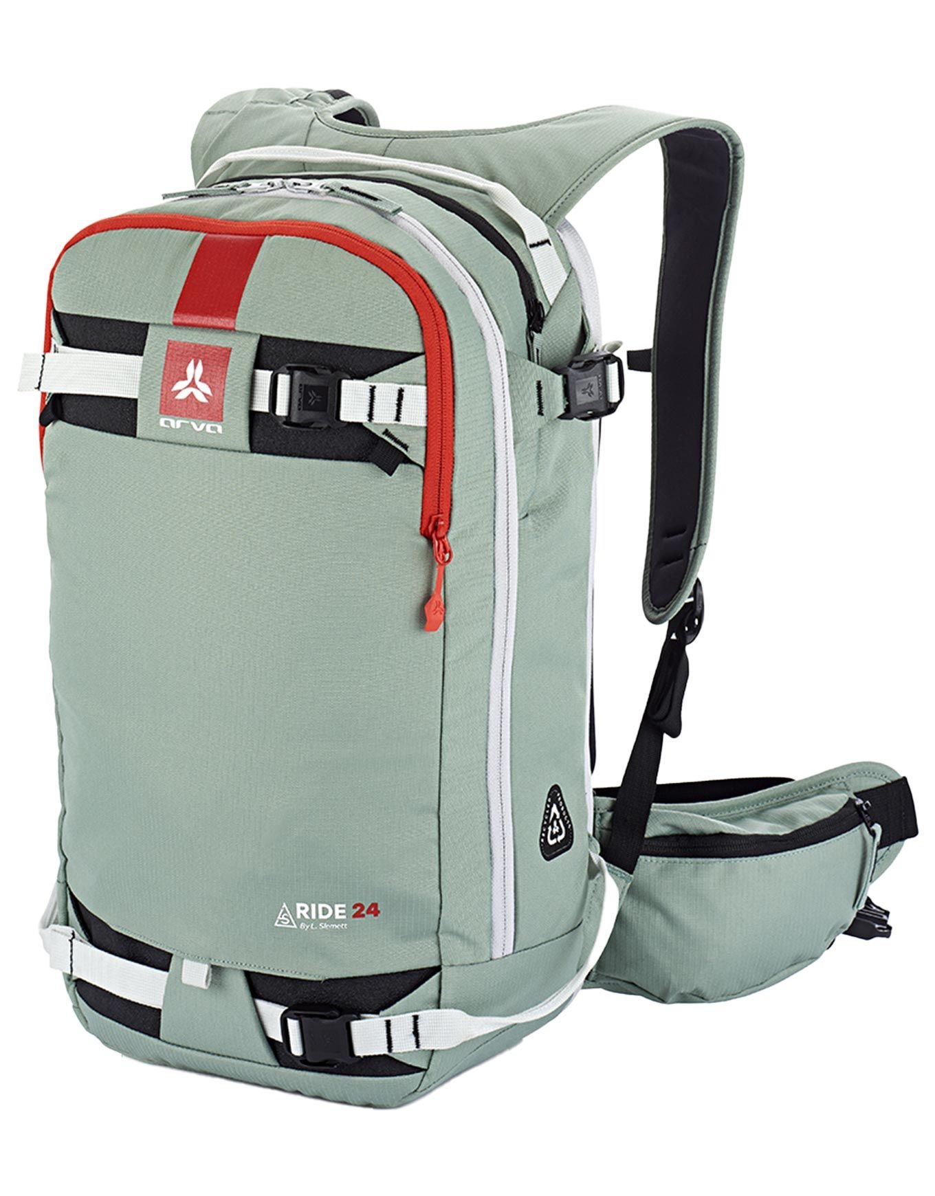 Sac à dos Arva Ride 24 Mousse, 24 L conçu avec Léo Slemett pour le freeride : accès frontal et dorsal, porte-skis/snowboard, poche masque, porte-casque intégré, ajustement anatomique.