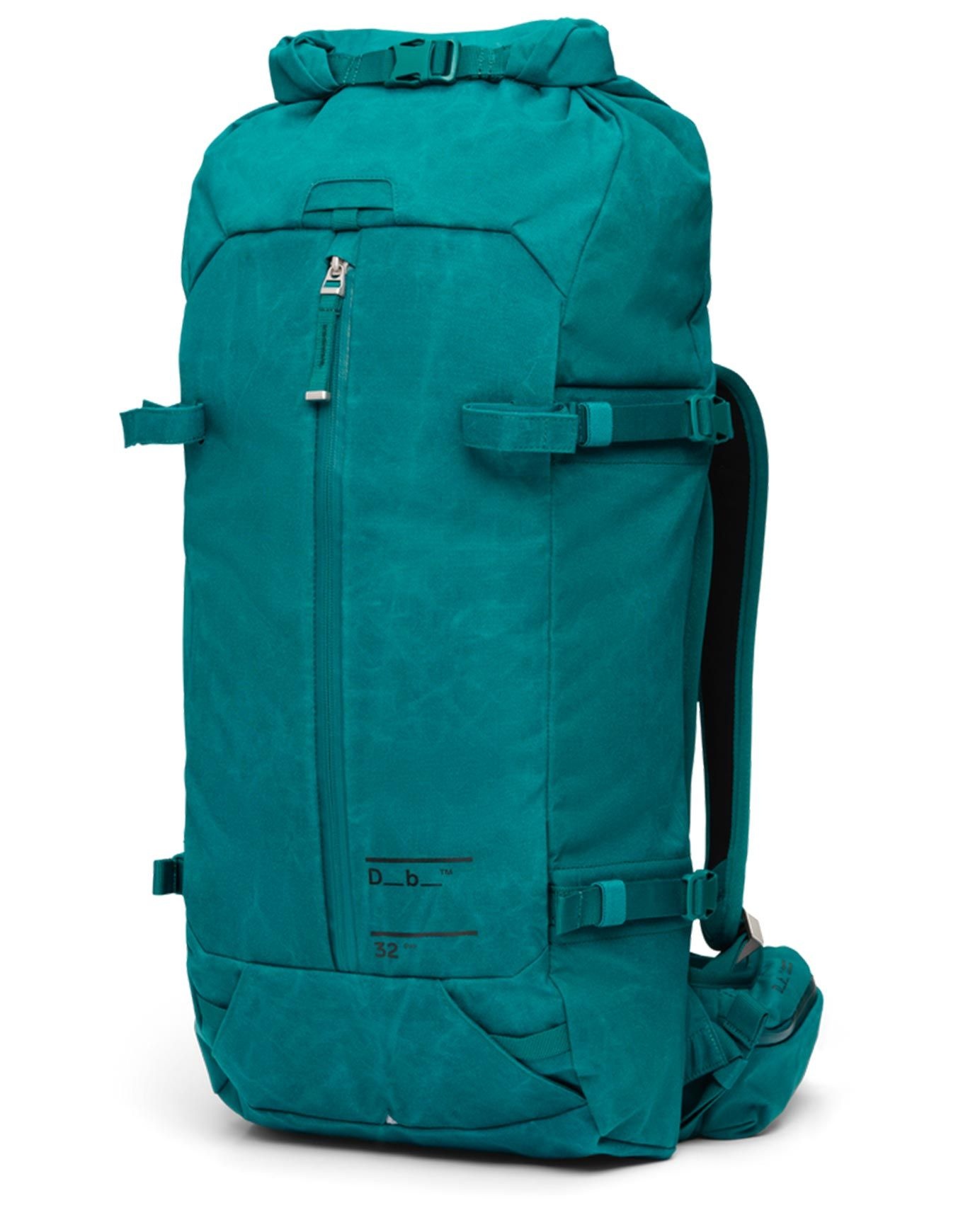 Sac à dos Db Snow Pro Backpack 32L Midnight Teal : construction Rib-Cage™, portage ski A-Frame et snowboard vertical, poche filet, porte-piolets et compatibilité Hook-Up™ pour sorties montagne.