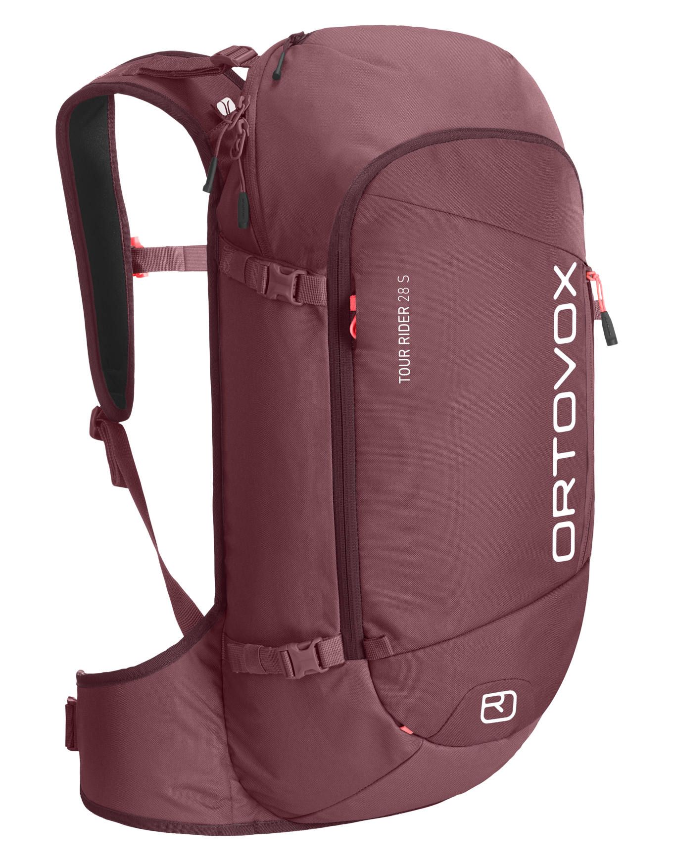 Sac à dos de ski femme Ortovox Tour Rider 28 S, dos court 28 L, accès arrière, fixations ski/casque, poche sécurité et hydratation, bretelles ergonomiques.