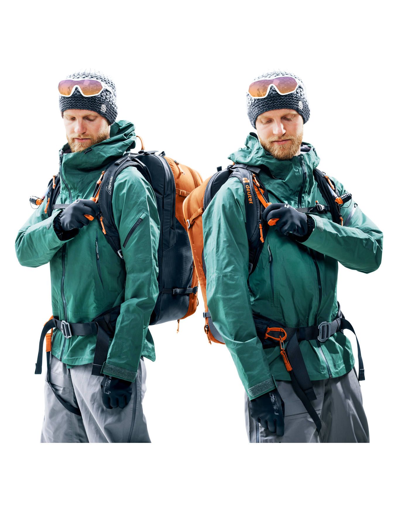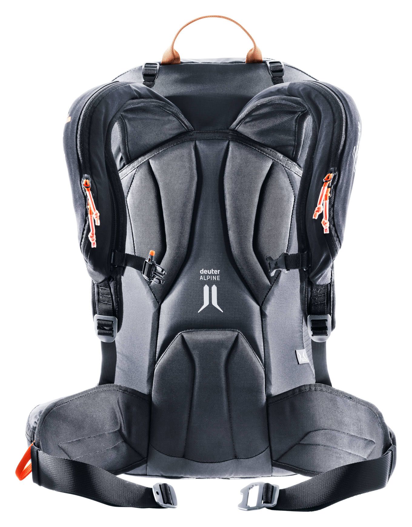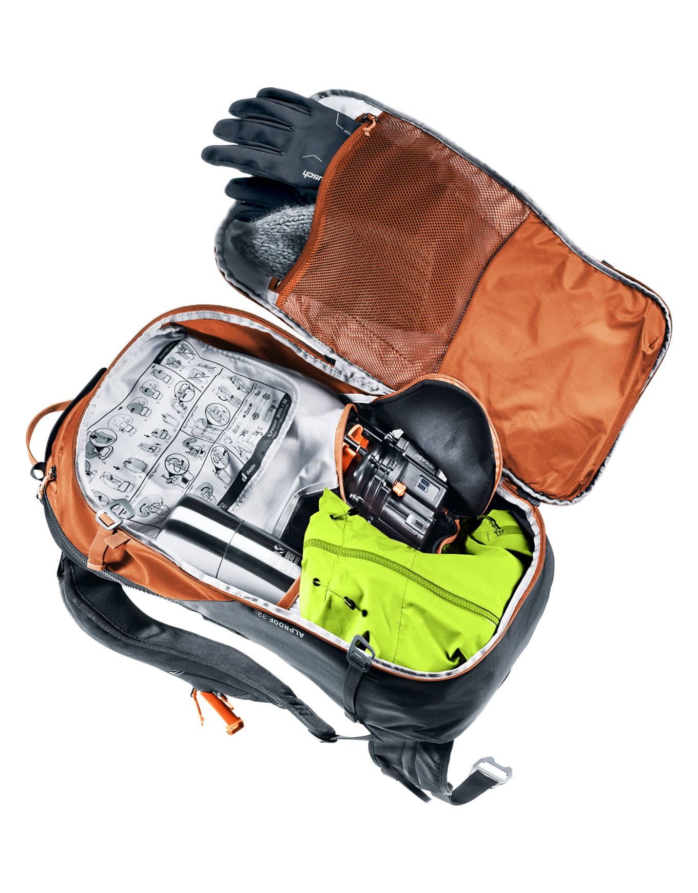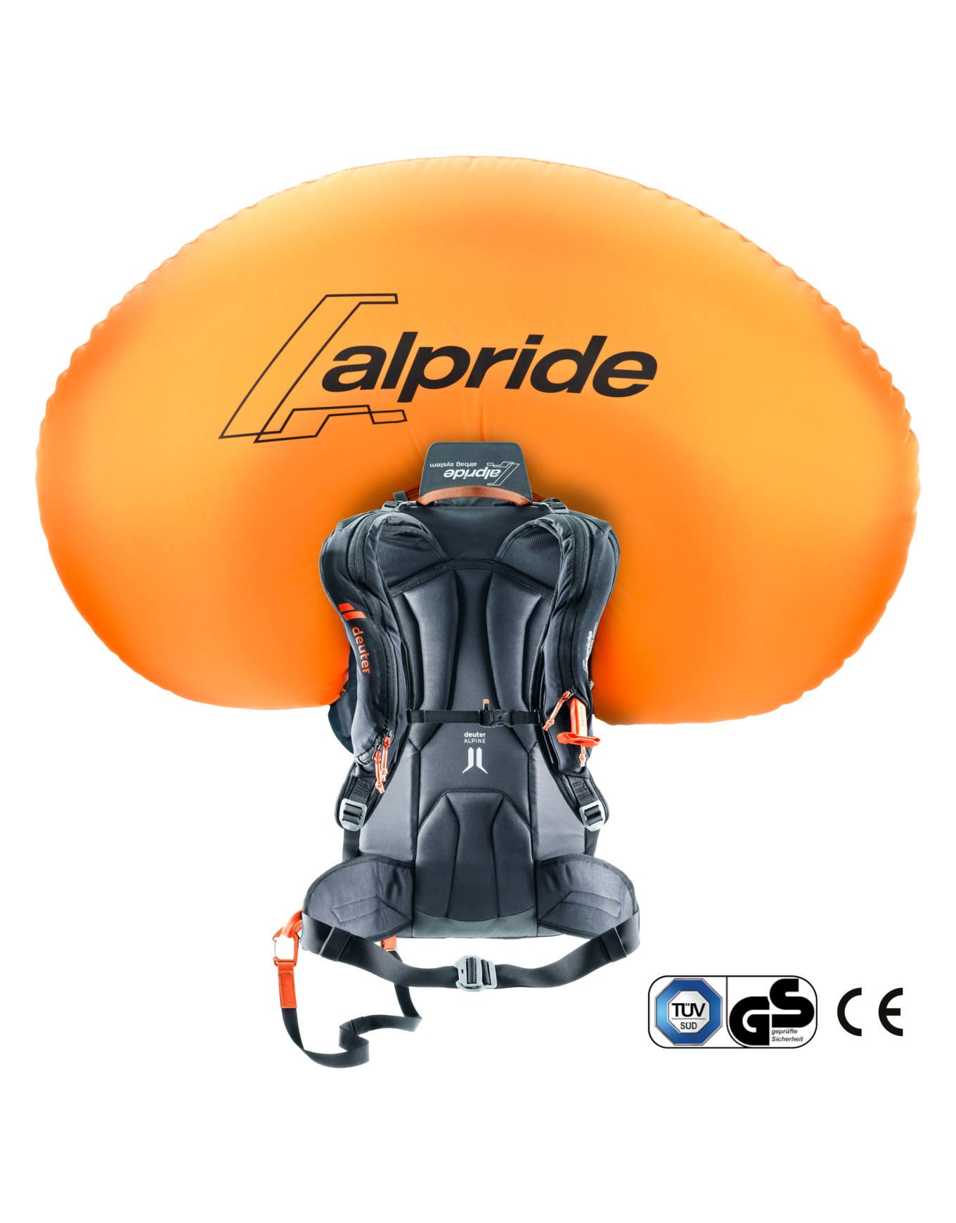 Sac à dos airbag Deuter Alproof 32 Chestnut Black pour homme, équipé du système Alpride E2 superléger gonflant 162 L en 3 s. Dos Alpine aéré, compartiment sécurité, fixations ski/snowboard, boucle jambe.