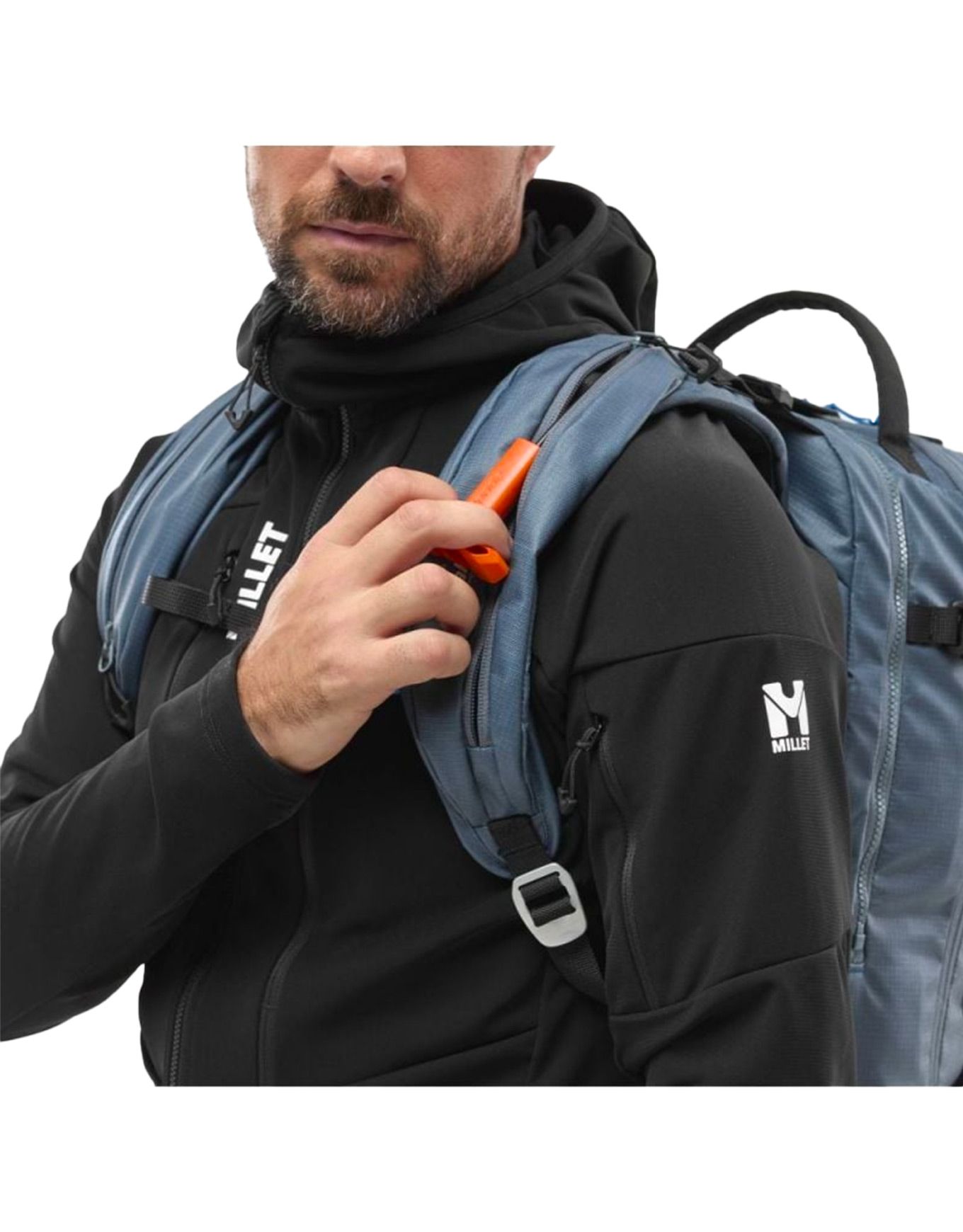 Le sac à dos airbag Millet Cosmic 28 ARS Dark Denim, unisexe et freeride, intègre le système Alpride 3.0 à cartouches incluses pour une protection en 3 s. En nylon 100 % recyclé imperméable, il offre 28 L avec porte-matériels, compartiments pratiques, bretelles et ceinture ergonomiques ajustables pour un fit précis et une charge équilibrée.
