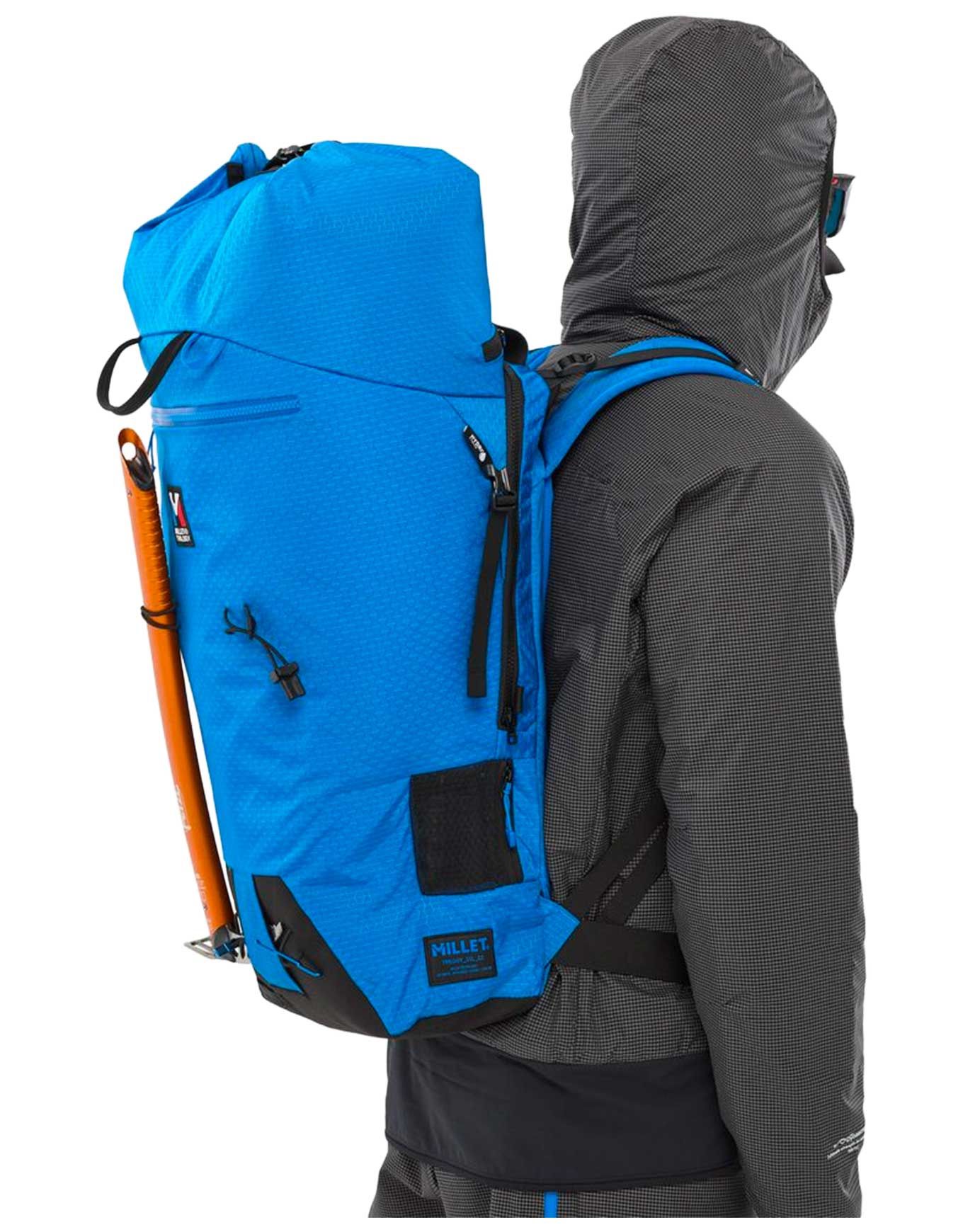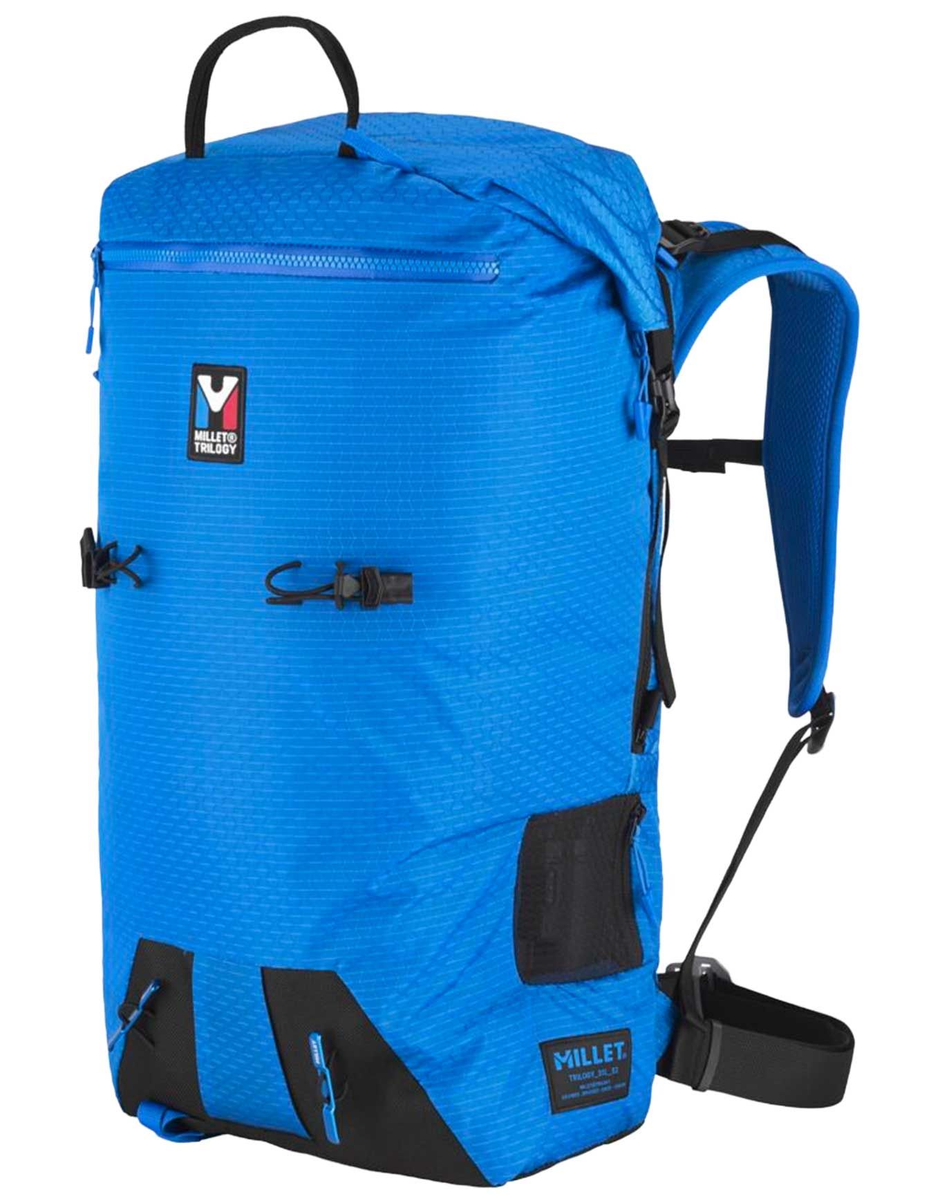 Sac à dos airbag mécanique Millet Trilogy 35 E2 Saphir en Dyneema®, 35 L, airbag Alpride E2 compact, bretelles ergonomiques, répartition optimale des charges, porte-skis, piolet, pelle/sonde, hydratation, sécurité avalanche.
