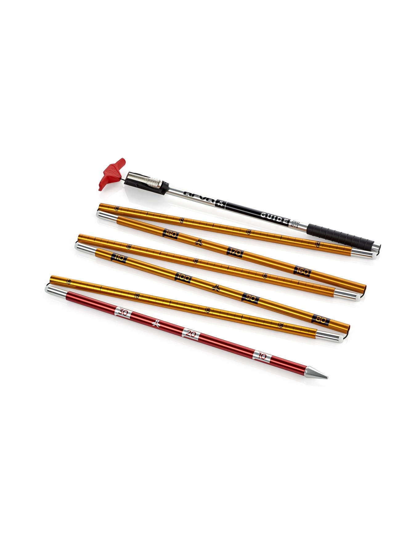 Sonde avalanche Arva Guide 260, 260 cm en 7 segments aluminium, système Rack Lock pour déploiement rapide, câble acier inoxydable, conçue pour pros secours en neige épaisse.
