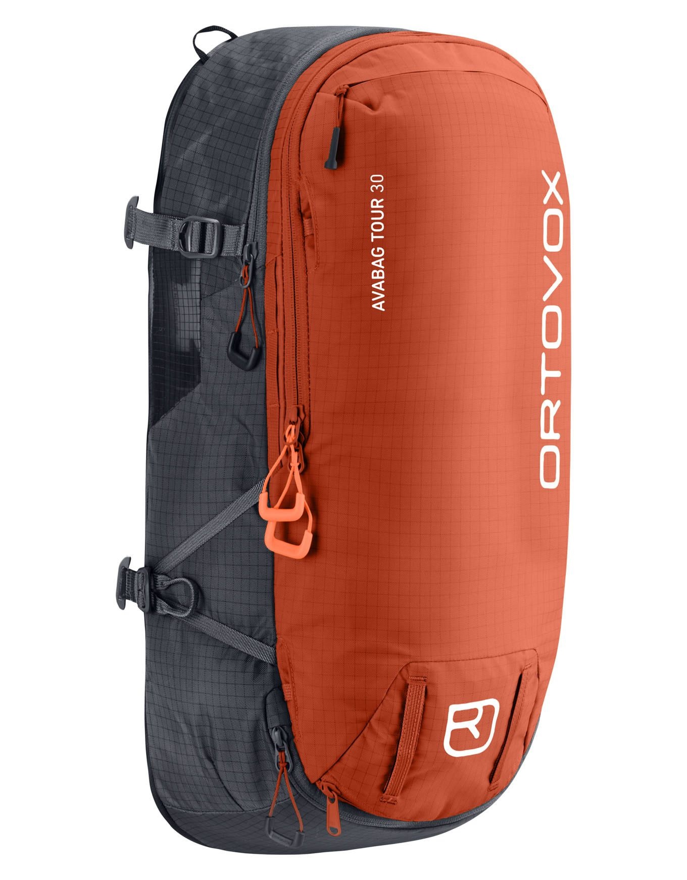 Sac à dos de ski 30 L Ortovox Avabag Litric Tour 30 Zip, partie dorsale modulable à zipper sur la base airbag Litric (non fournie). Compartiment sécurité séparé, fixations ski/snow/raquettes, porte-piolet, casque, corde et bâtons, en polyamide 400 D résistant.