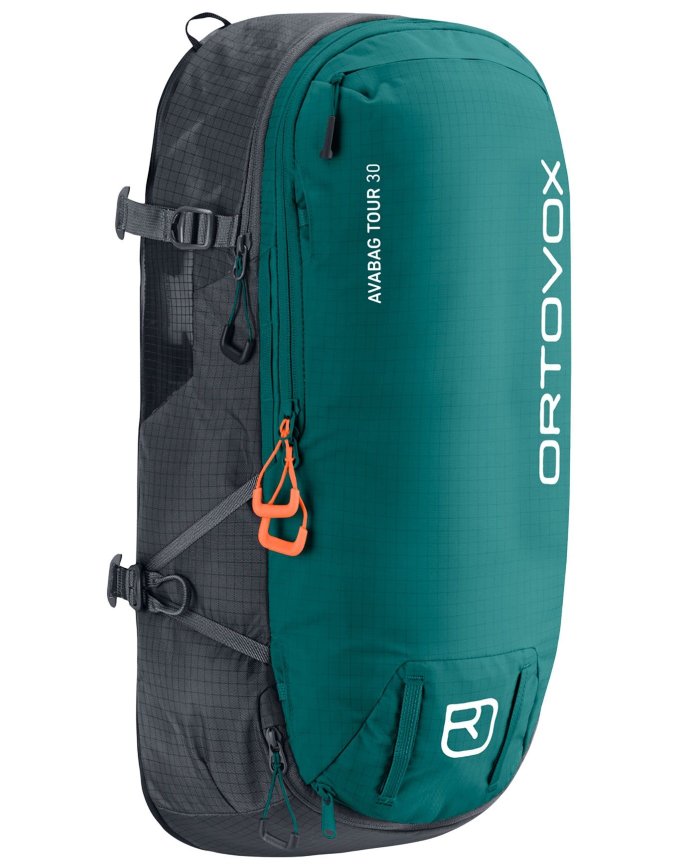Sac à dos de ski de randonnée Ortovox Avabag Litric Tour 30 Zip Pacific Green, 30 L, compartiment sécurité, fixations ski/snow, zip discret pour base airbag Litric (non fournie),polyamide 400 D résistant.