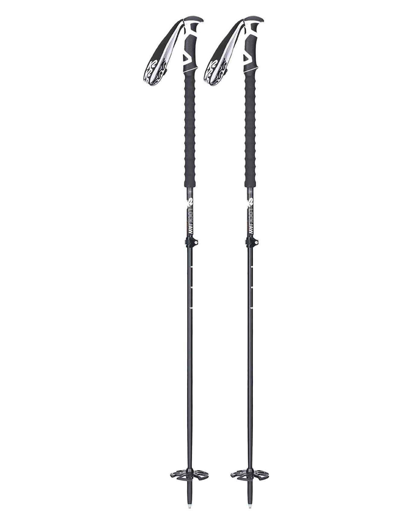 Les bâtons de ski télescopiques K2 Lockjaw Carbon combinent tube supérieur en carbone et brin inférieur en aluminium pour allier légèreté, rigidité et solidité en backcountry. Le grip EVA prolongé, la rondelle Powder 95 mm et le système Lockjaw 6000 assurent confort, flottaison et réglage fiable, tandis que la Emergency Release Strap permet un décrochage rapide des dragonnes.