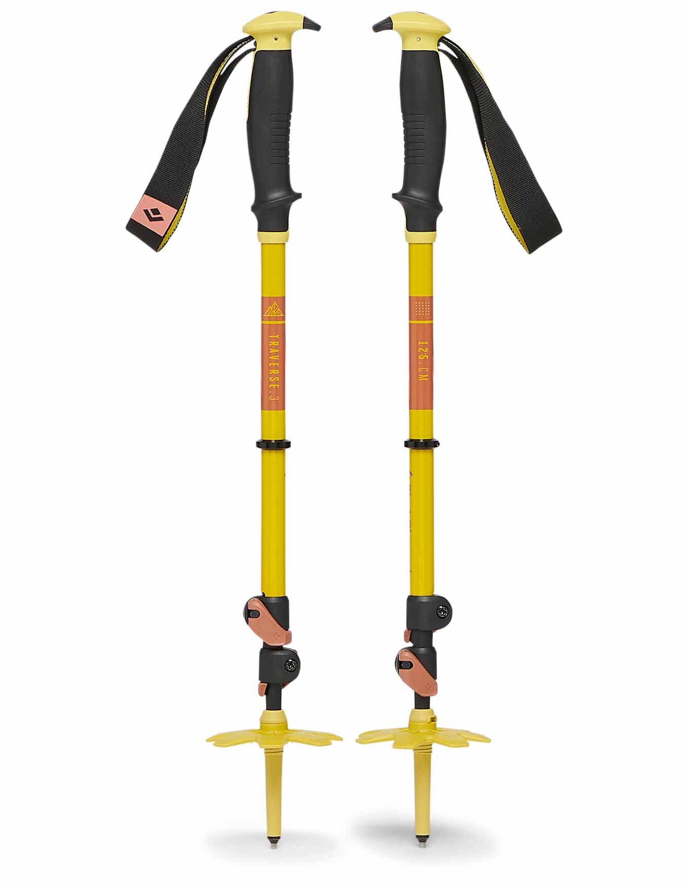 Black Diamond Traverse 3 Sulphure Green, bâtons de ski de randonnée 3 brins réglables FlickLock®, poignée ergonomique bi-densité, marquages neige 10-30 cm, tournevis PH3 intégré.