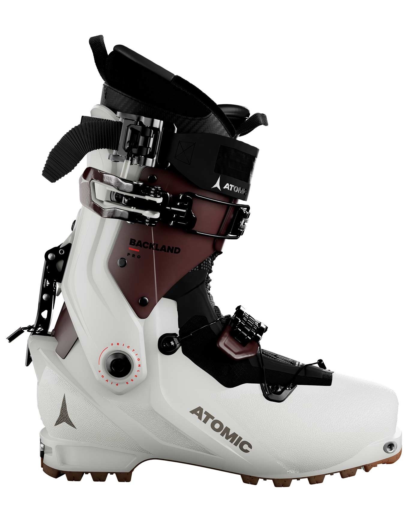 Chaussure de ski de randonnée femme Atomic Backland Pro W, combinant légèreté Prolite et amplitude 74° pour l’ascension, puissance Energy Backbone et fit Memory Fit pour la descente.