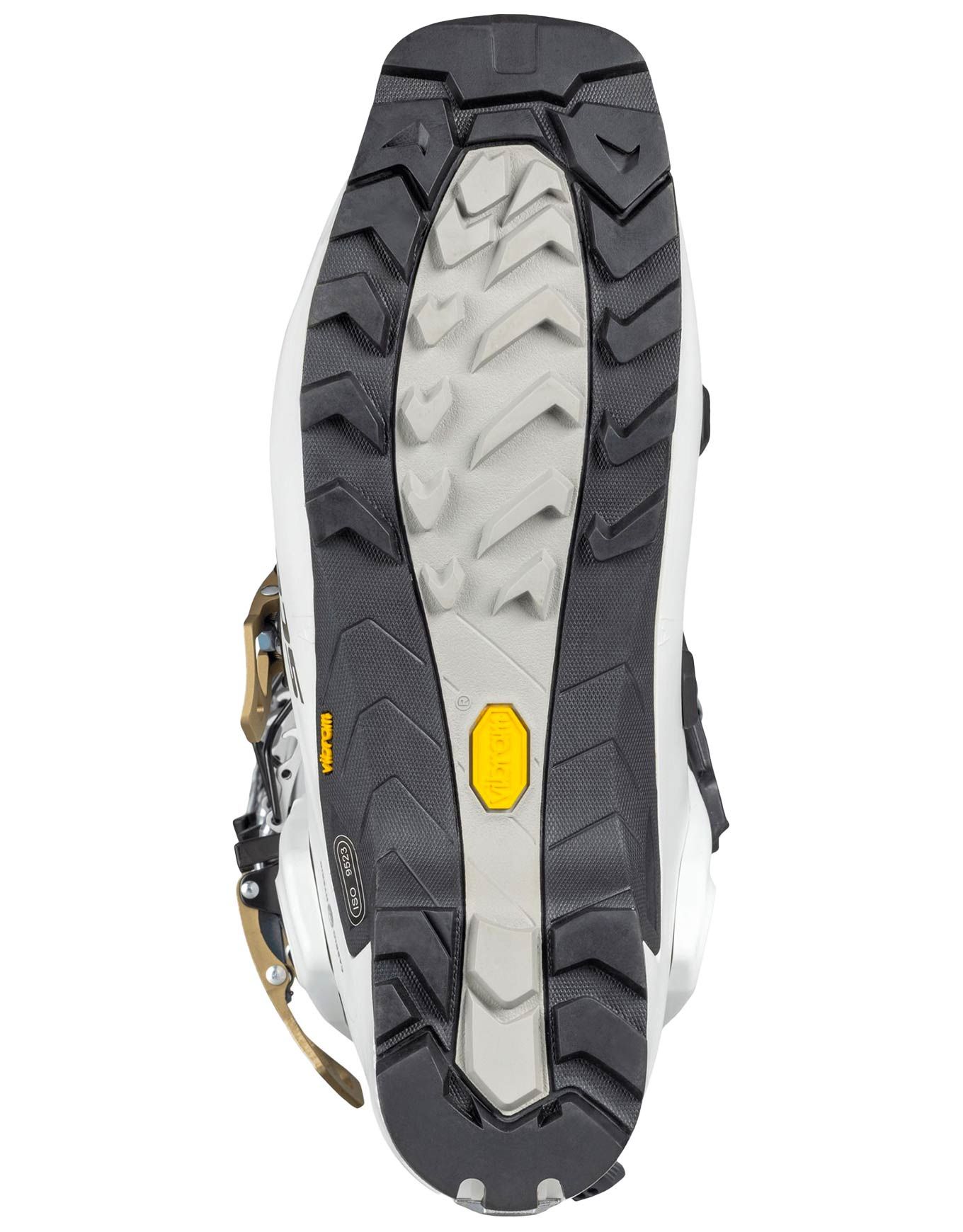 | Vibram® | Le caoutchouc Vibram® bi-densité couvre toute la longueur jusqu’au cou-de-pied pour une adhérence maximale sur terrains déneigés. Le caoutchouc noir plus dur sur le périmètre renforce la durabilité et la stabilité latérale dans les fixations step-in. Le caoutchouc rouge plus malléable au centre optimise la traction. |