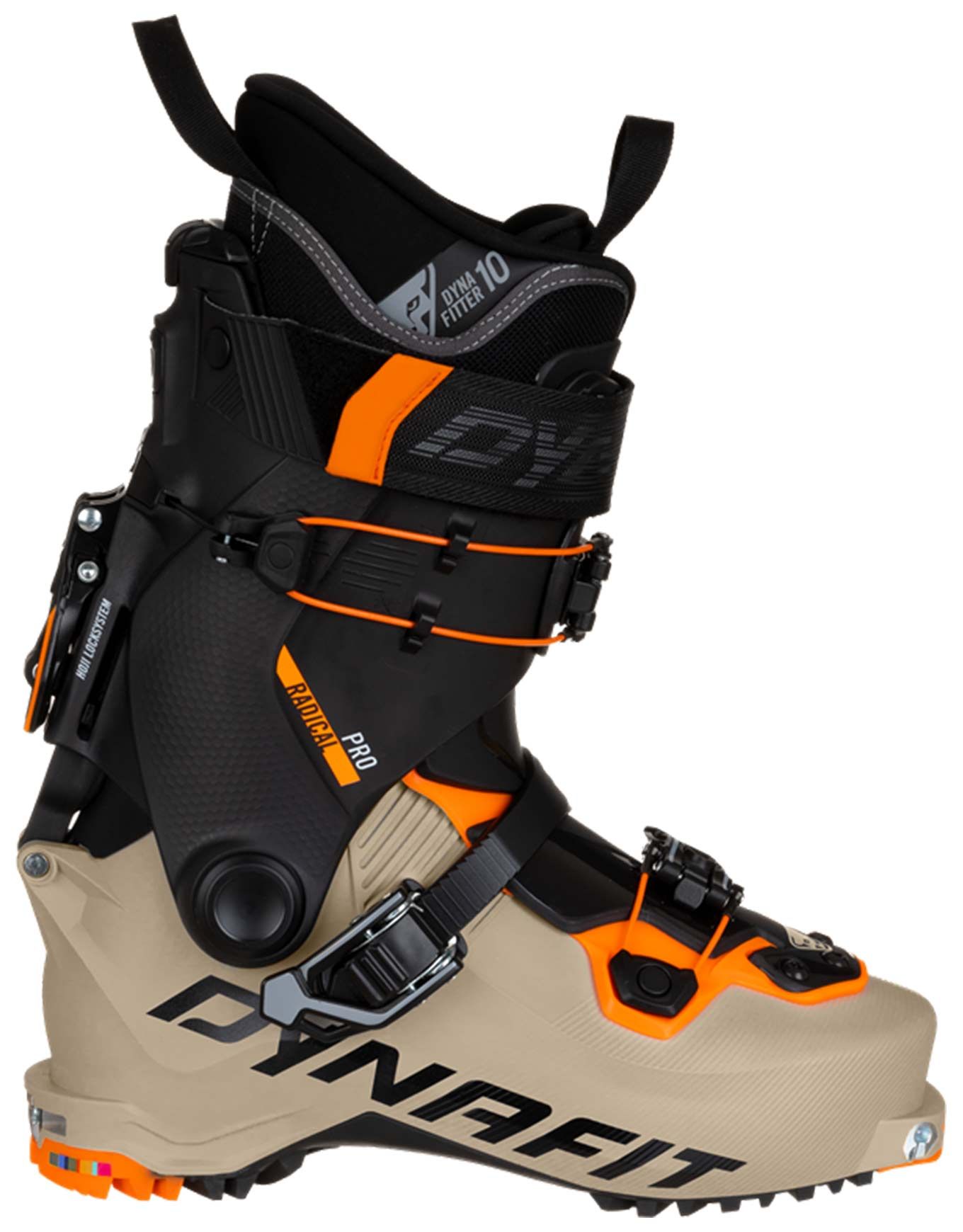 Chaussures de ski de randonnée homme Dynafit Radical Pro Rock, 1380 g, 60° débattement, flex 120, chausson thermoformable, système Hoji Lock pour passage rapide marche/ski.