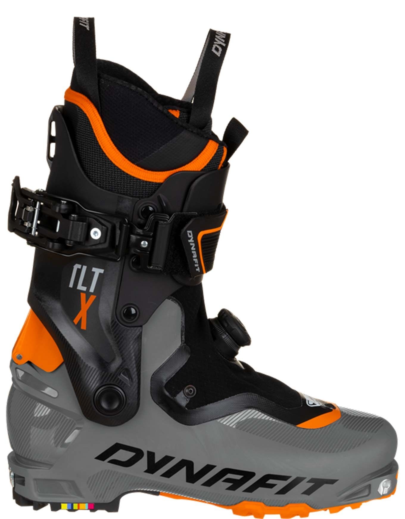 Les chaussures de ski de randonnée Dynafit TLT X PU Magnet/Fluo Orange homme offrent un débattement 60°, un verrouillage Ultra Lock 5.0 et un chausson thermoformable Dynafitter 5 pour assurer légèreté, précision en descente et confort personnalisé.