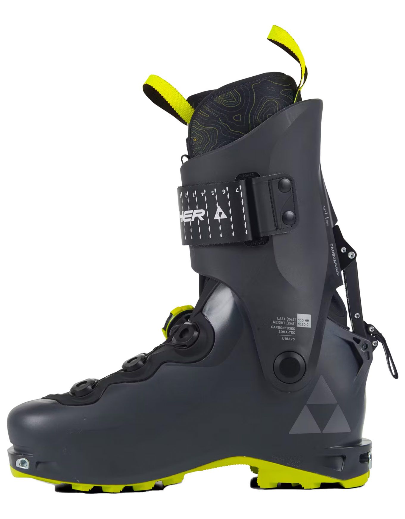 CARBONFUSED® CUFF + SHELL Le tout nouveau mélange high-tech de fibres de carbone mélangées à du plastique injecté confère à la chaussure une stabilité et une rigidité en torsion maximales.