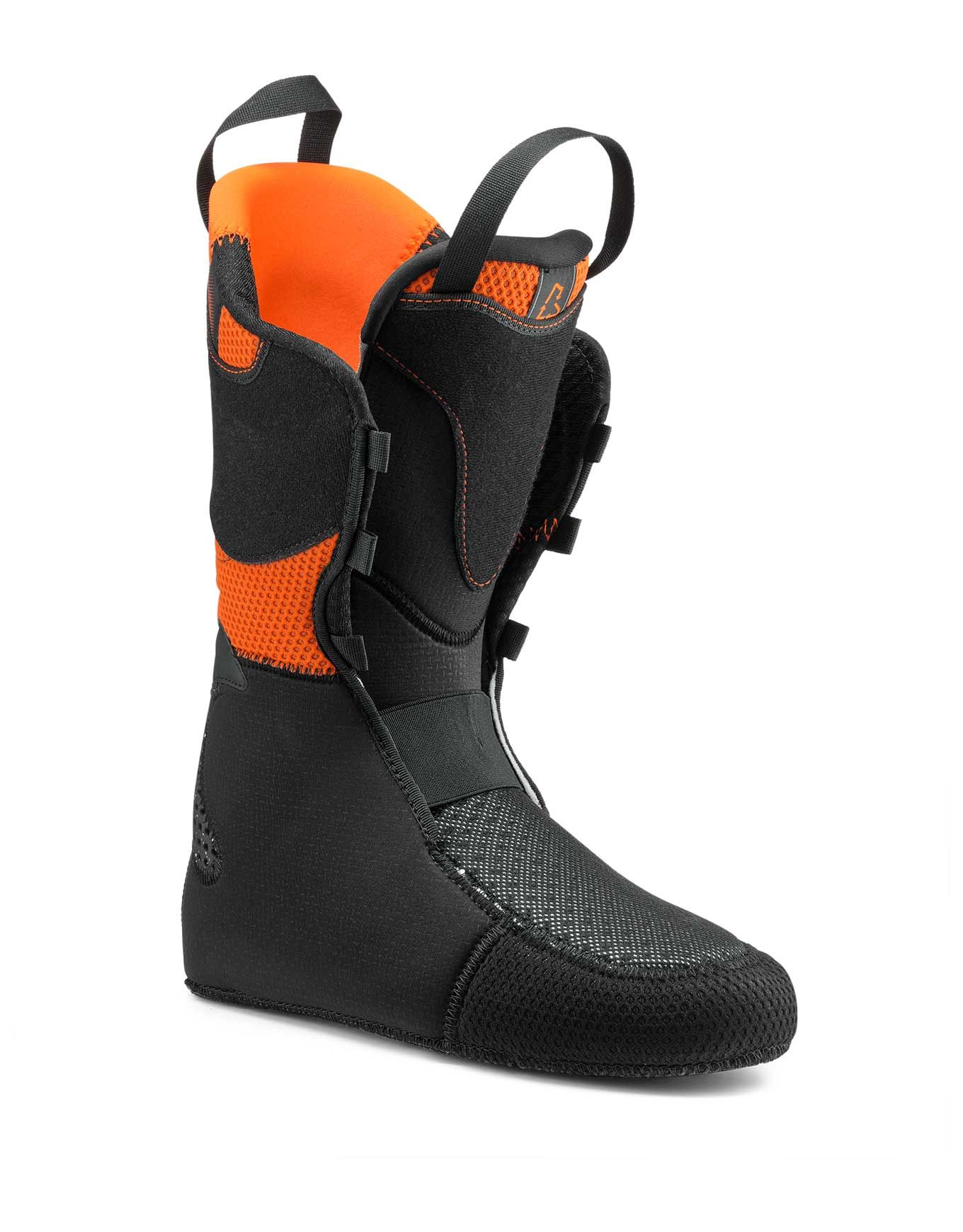 La précision des appuis est ultra-fine grâce à un flex de 130, une largeur interne de 100 mm au niveau des métatarses et un serrage à 4 boucles. L’optimisation de l’entrée en courbe et du maintien des appuis permet de descendre en toute sérénité.