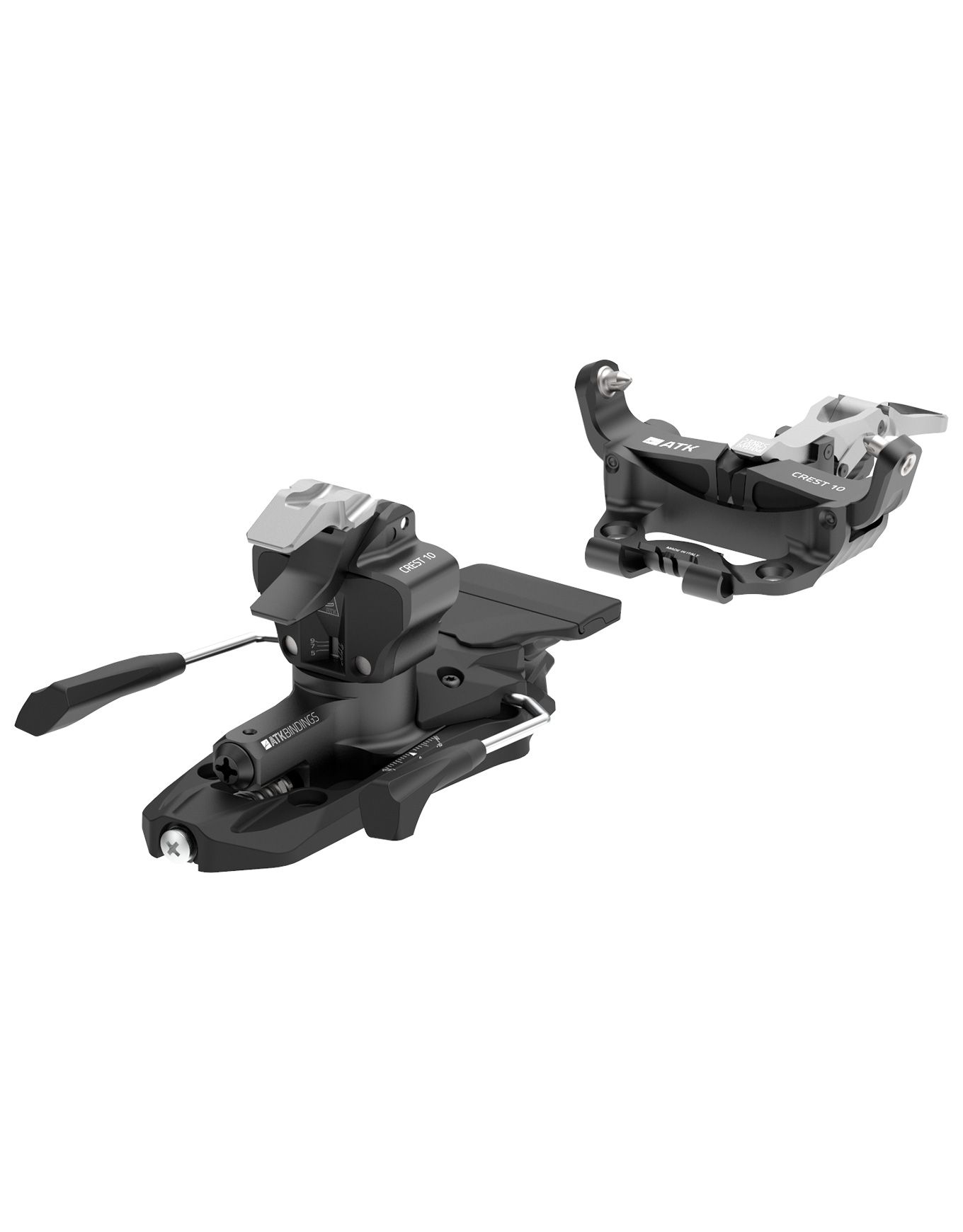 Proposées par ATK, les fixations Crest 10 Black s’adressent aux pratiquants de ski de randonnée possédant un niveau intermédiaire. Un Cam Release System® et les stop-ski AP Brake System®, permettant un déclenchement latéral réglable de 4 à 10.