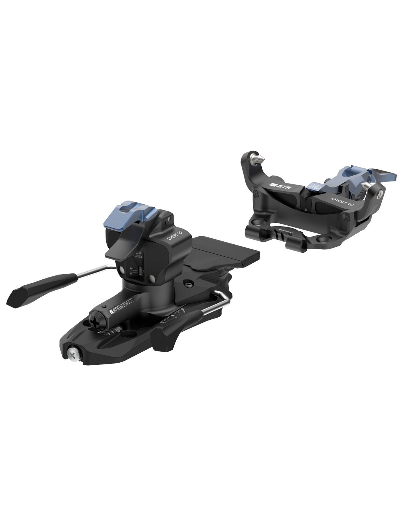 Destinées aux pratiquants de ski de randonnée de niveau intermédiaire, les fixations Crest 10 Dark Blue de la marque ATK offrent un équipement fiable et performant. La sécurité est assurée par le Cam Release System® couplé au système de freins AP Brake System®, autorisant un réglage latéral du déclenchement entre 4 et 10. La technologie Easy Entry System®, complétée par une talonnette magnétique offrant une plage de réglage étendue en mode marche, rend possible l’enfilage et le retrait des chaussures à tout moment. Pour le confort d’utilisation, ATK a développé le Snow Pack Proof System® qui empêche accumulation de neige et de glace sur la fixation. Une grande résistance à la torsion est obtenue grâce à l’Elastic Responsive System®. Une plaque de réglage de 20 mm est également intégrée à ce modèle, offrant davantage de souplesse lors des sorties en ski de randonnée classique. Sécurité et longévité caractérisent la Crest 10, idéale pour les longues traversées comme pour les sorties classiques en montagne.