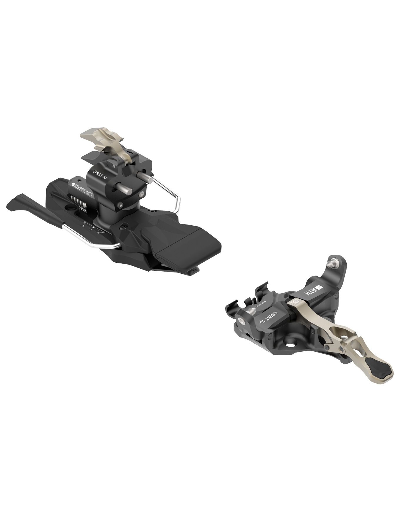 Conçues par ATK pour les pratiquants de niveau intermédiaire, les fixations Crest 10 Dark Bronze s’adressent aussi bien aux skieurs qu’aux skieuses passionnés de randonnée. La sécurité optimale est garantie par le Cam Release System® et les stop-ski AP Brake System®, permettant un déclenchement latéral réglable de 4 à 10.