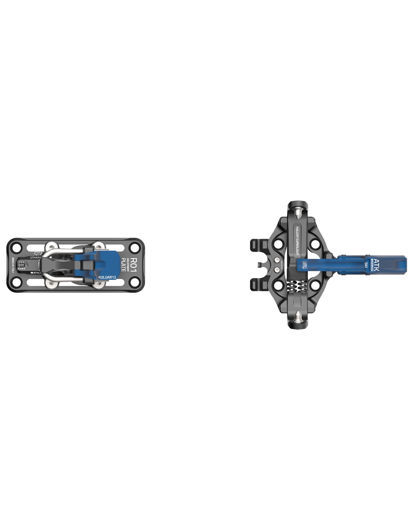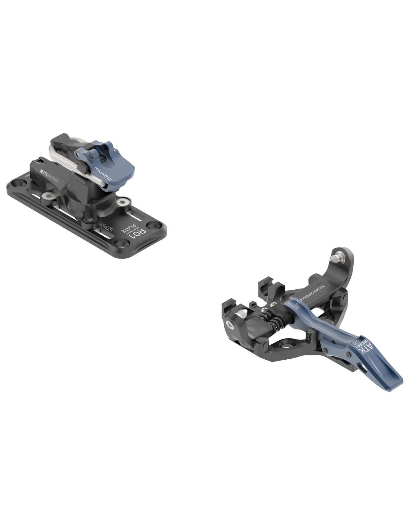 Fixations de ski de randonnée ATK Kuluar 12 Superlight, ultra-légères en aluminium 7075 et POM, déclenchement latéral réglable 6-12, Easy Entry System® et plaque 30 mm pour un chaussant facile et un réglage précis.