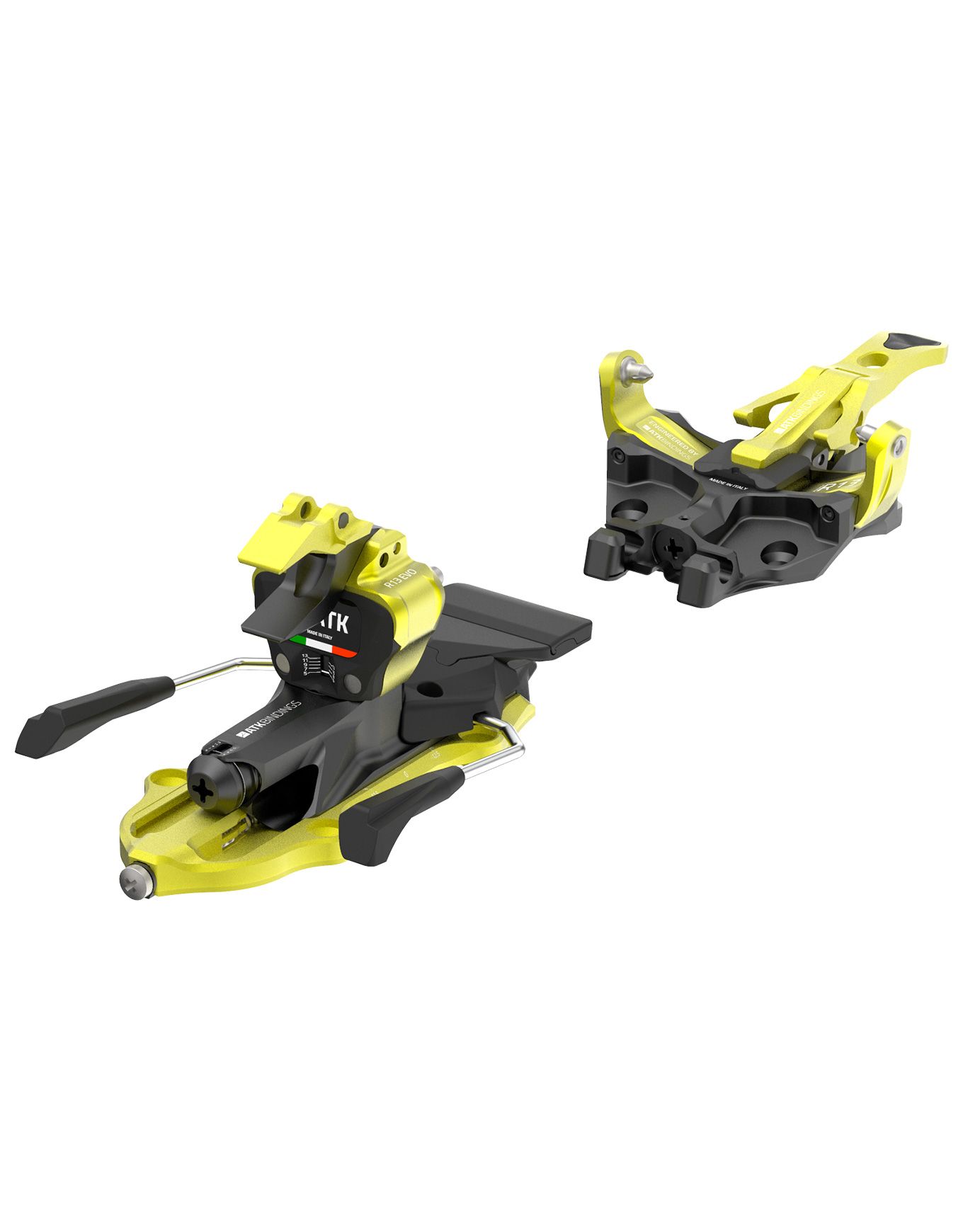 Fixations de ski de randonnée ATK Raider 13 Evo Yellow, niveau intermédiaire, déclenchement latéral réglable 5-13, frein EVO, easy entry, réglage 25 mm.