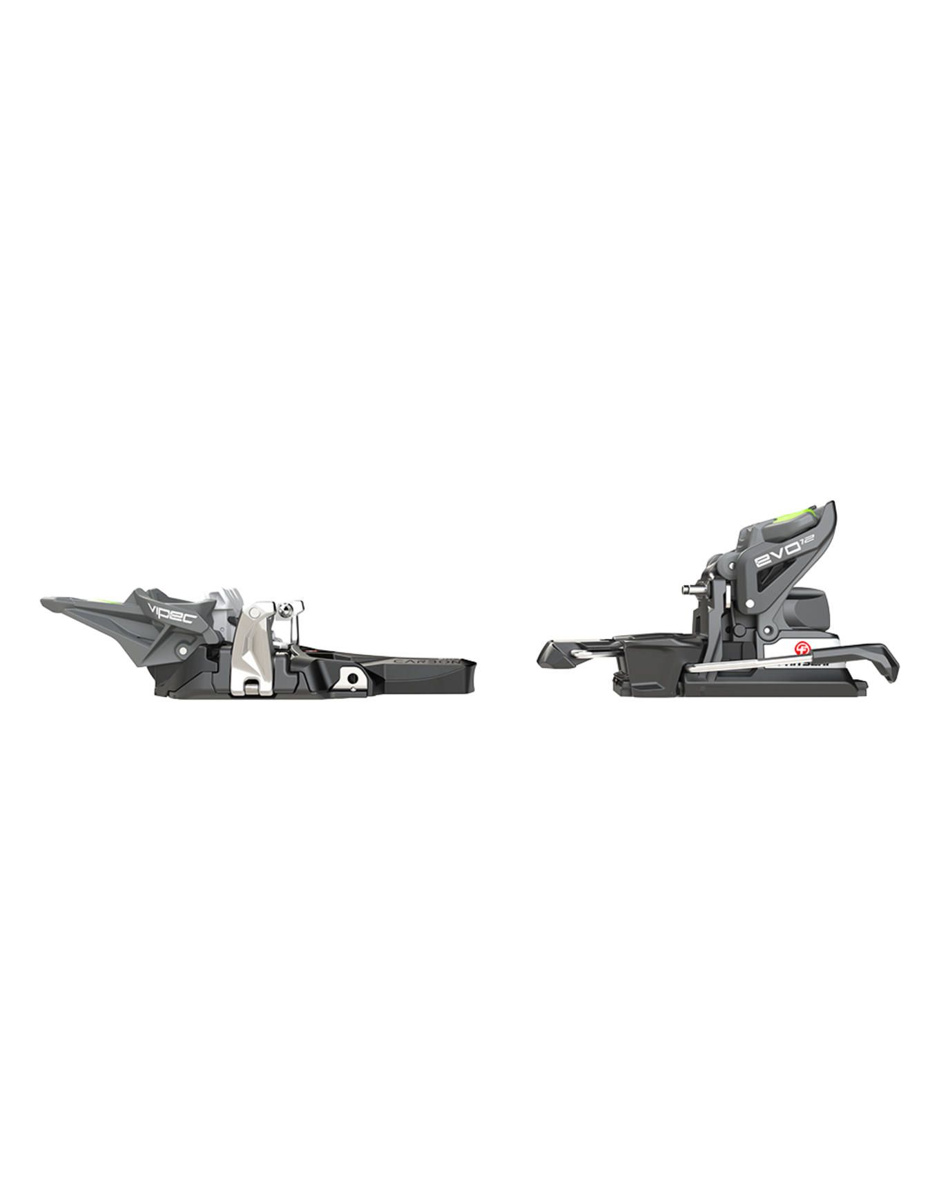 Fixation de randonnée Fritschi Vipec Evo 12 au chaussage intuitif, en plastiques renforcés carbone pour légèreté et durabilité, déclenchements latéral 13 mm et frontal sécurisés, réglage DIN, passage montée/descente au bâton sans sortir du ski.