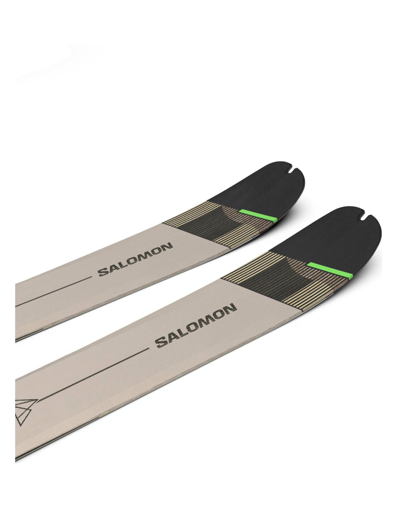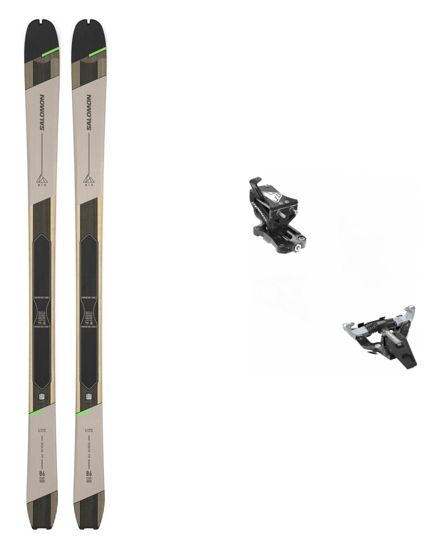 Le ski de randonnée Salomon MTN 86 Carbon, unisexe, combine noyau bois Karuba/peuplier et rocker tout-terrain pour offrir légèreté, stabilité et accroche sur les couloirs raides.