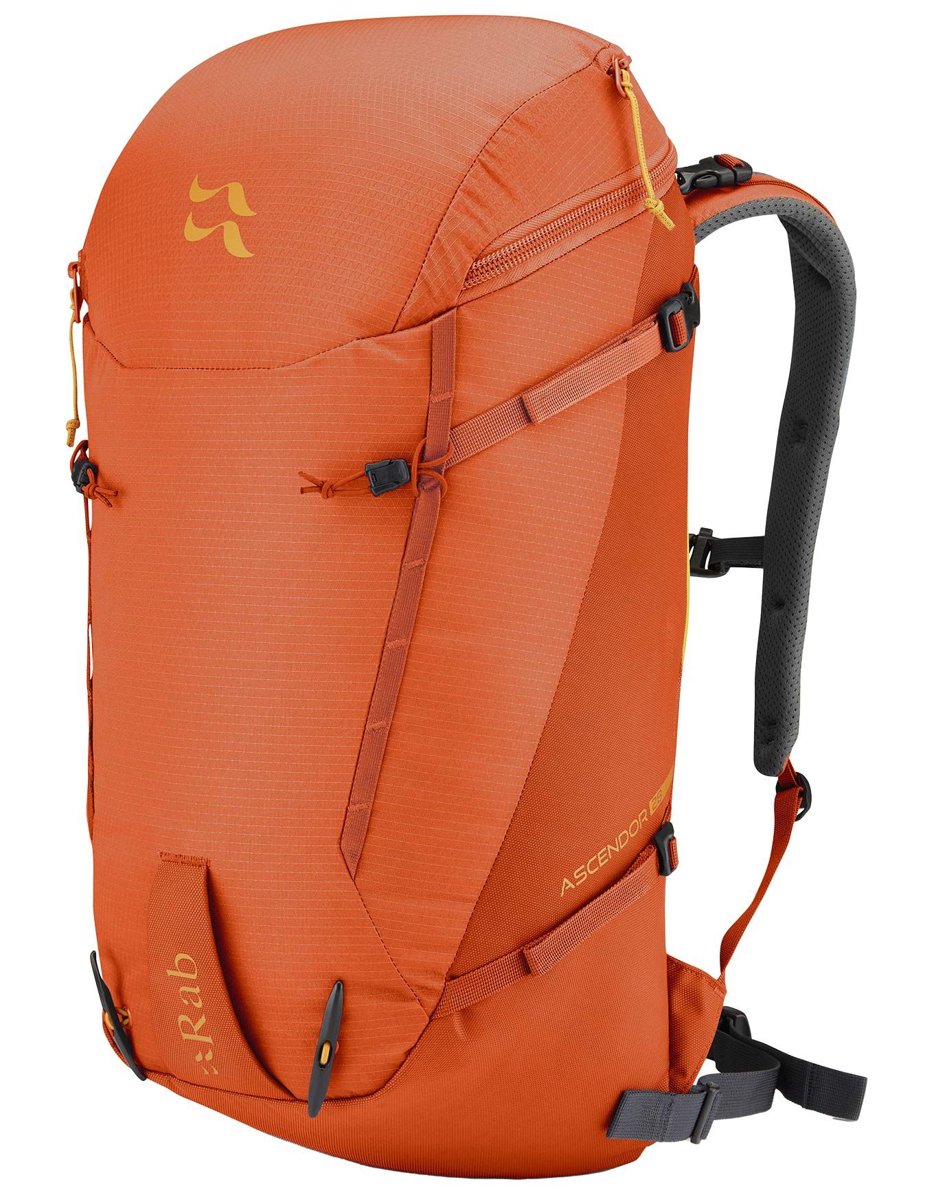 Sac à dos Rab Ascendor 28 Firecracker 28 L en nylon ripstop ROBIC® pour randonnée et ski de randonnée, résistant à l’eau, compatible poche d’hydratation 3 L, daisy chains, compartiment principal zippé protégé.